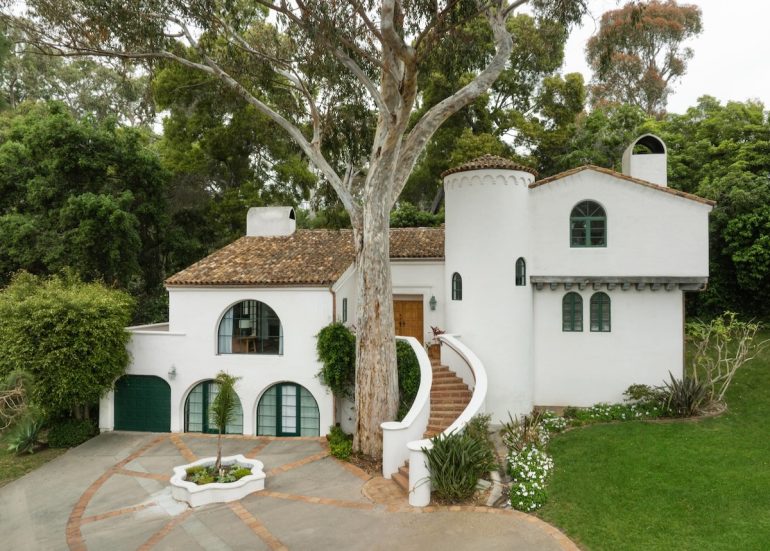 The 1989 house at 160 Butterfly Lane ($5.495 million) has splashy curb appeal, what with the sweeping staircase, multiple arched windows, and tower. Inside has merits, too, but the dining room area feels a bit makeshift and the bathrooms may or may not be ready for a refresh, depending on your preferences. (The primary is a whopper.) While there appears to be negligible outdoor space, Coast Village Road and Butterfly Beach are a pleasant stroll away. P.S. The seller paid $2.976 million in December 2020.