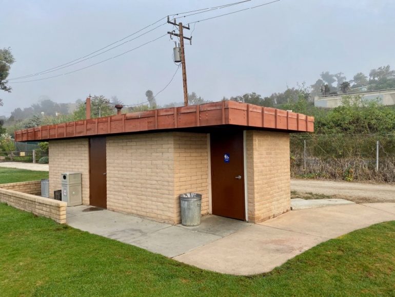Van Wie explained the scope of the project: “The renovations include removal of existing auxiliary park sheds, concrete drainage swale and sections of existing asphalt; repaving of the parking lot; installation of decomposed granite trails, natural stone benches, planting and irrigation systems, grassy and permeable paving picnic areas with BBQs, trellises and recreational site amenities such as concrete ping-pong tables and a bocce court. Additional site improvements include relocation of the EV charging station and upgrading the concrete site drainage swale to natural rock percolation to more naturally deter erosion and reduce hardscape.” And there’s a large parking space near the picnic area that can handle a food truck, for booked events and possibly daily use.