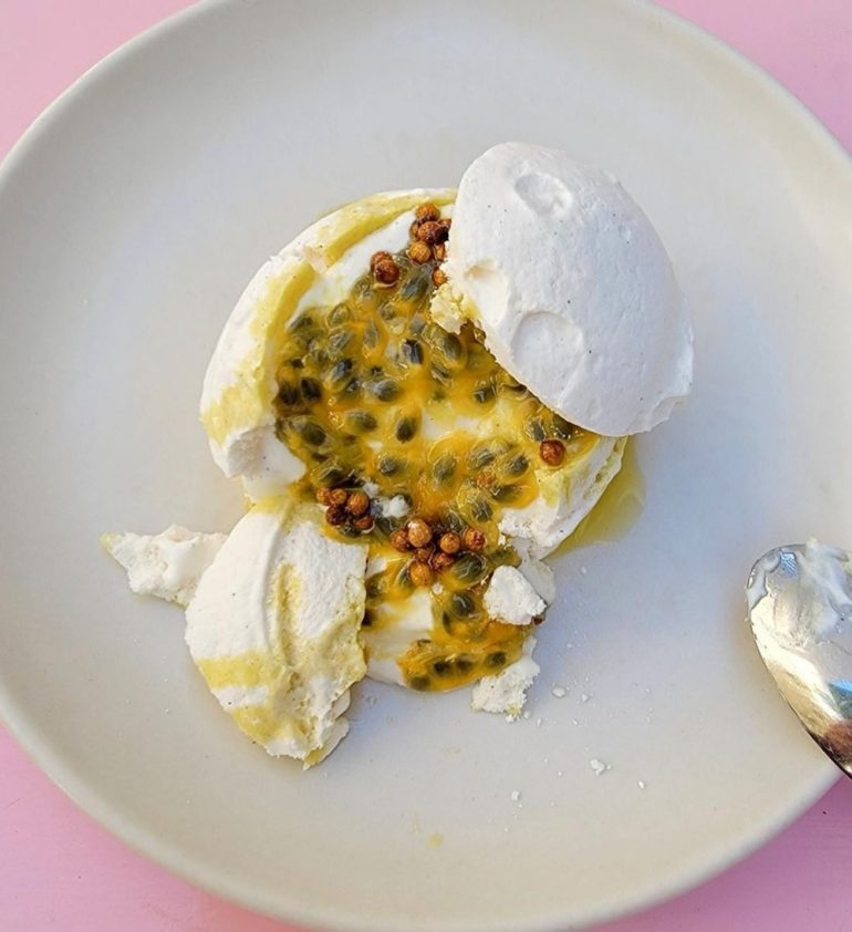 ••• Edible Santa Barbara ran the recipe (online here) for Bettina‘s popular passion fruit pavlova. Even if you don’t want to make the whole thing, you might find uses for the delicious sweetened-then-fried coriander seeds.