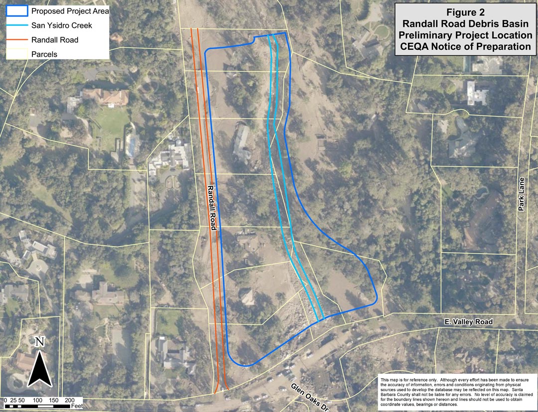 ••• “Environmental review for a new Montecito debris basin will be finished next year, according to Santa Barbara County Flood Control [….] The county does not have all the funding necessary for the proposed debris basin on Randall Road and Highway 192, at San Ysidro Creek, but has hired project design and environmental review process consultants. […] The Randall Road debris basin would be built on more than 8 acres of property along San Ysidro Creek.” —Noozhawk