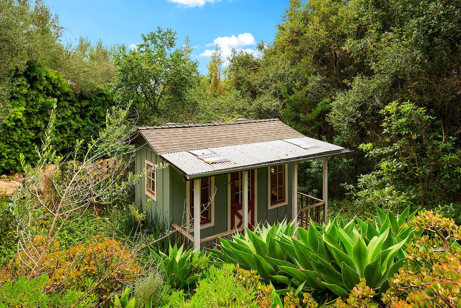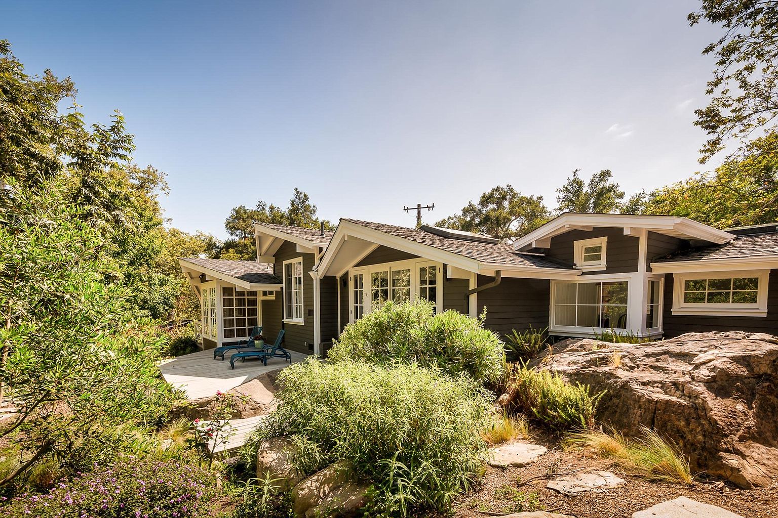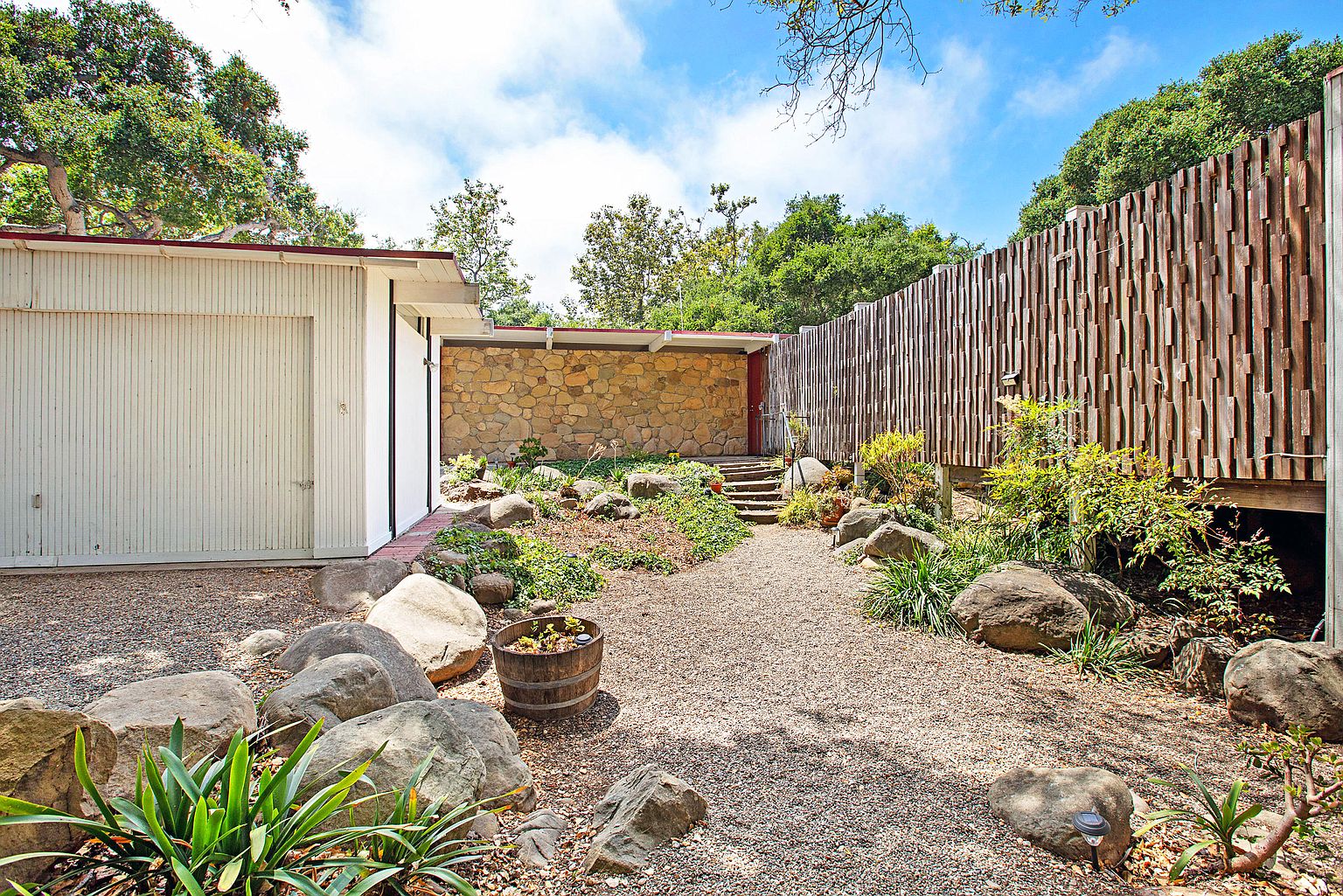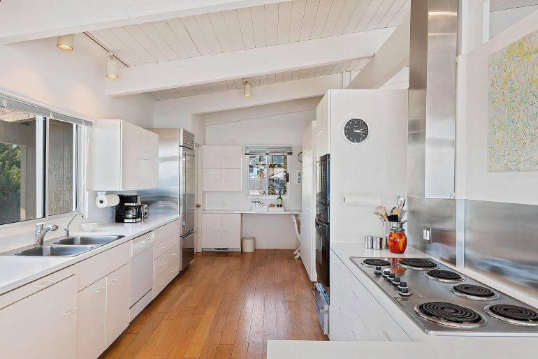 Meanwhile, the 1950s house at 165 La Vista Road ($2.796 million) on Eucalyptus Hill just got a renovation. The exterior color, landscaping, and photography are doing it no favors.