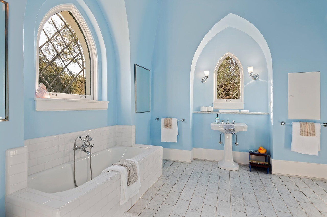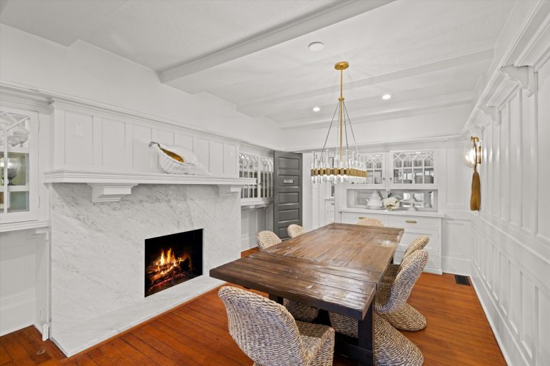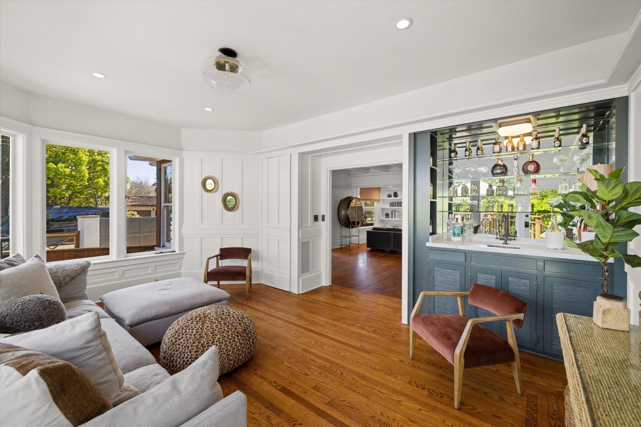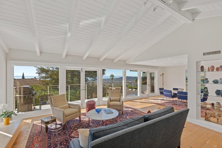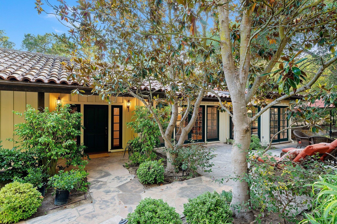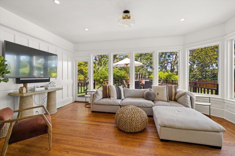 The 1885 house at 1 Miramar Avenue ($15.5 million), just off Miramar Beach, has sold three times in under three years (for $4.295 million in December 2019, $7.675 million in September 2021, and $8.25 million in November 2021). It’s a charming, rambling house, with adorable nooks and quirks, that feels like old Hawaii. The current owner has brought in a Brentwood edge, possibly a nod to the nearby Rosewood Miramar Beach resort, and removed the dense foliage in the yard. (This video shows how the property used to look.) The desire for light and open space is understandable, but as a result, the house is exposed to Miramar Avenue and Eucalyptus Lane.