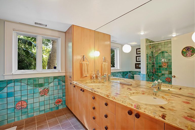 The 1957 house at 947 Arcady Road ($3.45 million) went pending immediately, presumably because it’s not easy to find a decent five-bedroom house for this price in this area. That said, the bathrooms are rather idiosyncratic.