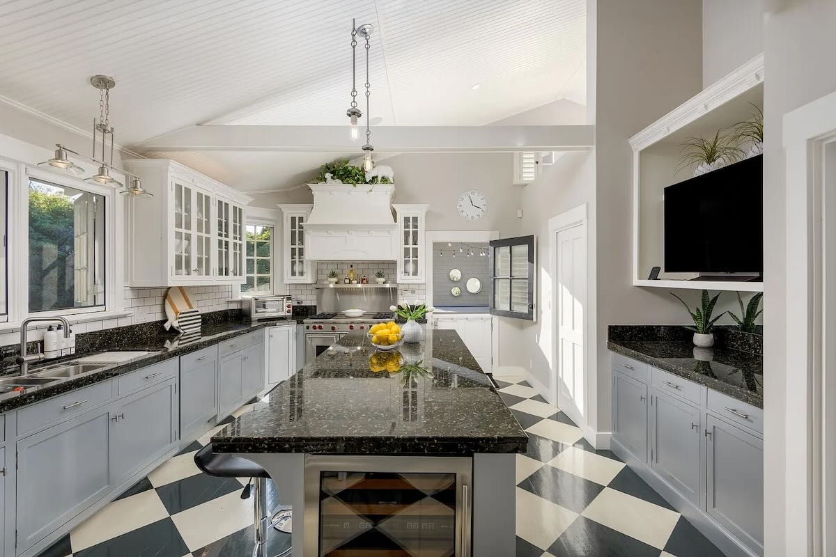 1650 East Valley Road ($12.25 million) was built in 2002 but comes off older in a good way, with classic traditional interiors that have stood the test of time (notwithstanding the wine room, which evokes a Shakey’s Pizza Parlor). The five-bedroom main house seems big enough on its own, but there are also very handsome guest quarters and an itty-bitty pavilion by the back gate. The location is convenient, with a caveat—it’s on the S-shaped stretch of East Valley Road across from Knollwood Tennis Club, where looking both ways as you exit the property could give your neck a workout.