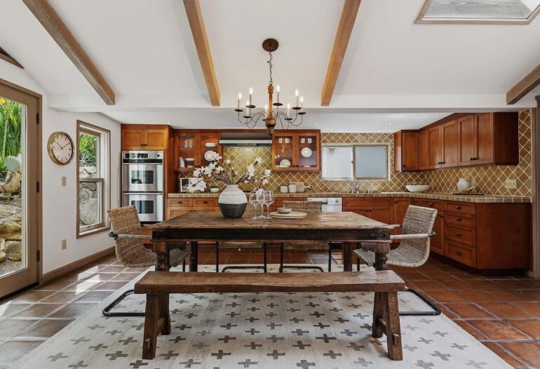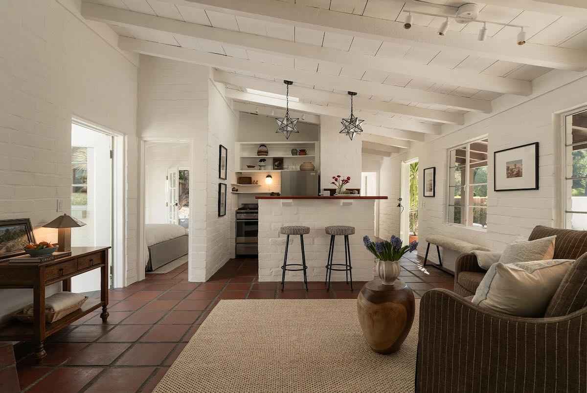 Between Cielito and Mission Canyon, the 1946 two-bedroom, one-bath, half-kitchen 485 Mountain Drive ($1.7 million) would make a neat little pied-à-terre, particularly for a city person who doesn’t mind being on that road. It’s part of El Rancho Hacienda, “a rare enclave of seven individual adobe-style casitas set on five serene acres. Designed as a rural Southern California interpretation of the classic bungalow court, the property is held as Tenancy in Common, sharing many characteristics with a Planned Unit Development.”