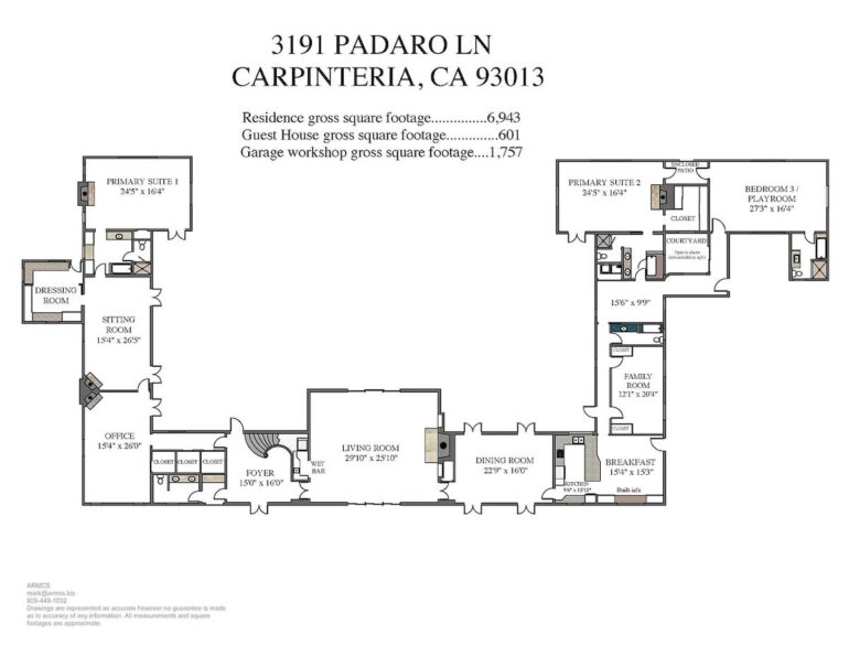 The listing for 3191 Padaro Lane ($42 million) includes a fabulous 1930 aerial shot, with the 1920 estate more or less alone on the coast. These days, the house isn’t quite as interesting as the land: 5.47 acres across two parcels, each with beach access, and 335 feet of ocean frontage.