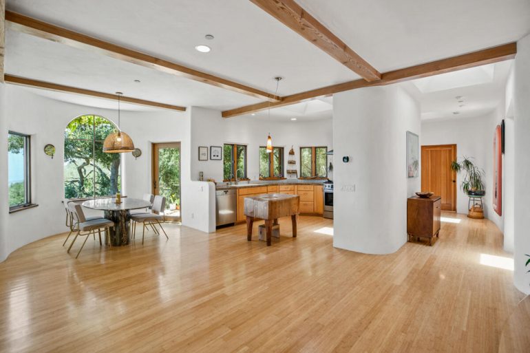 There’s a grooviness to the lines inside and out at 1480 Mission Canyon Road ($4.4 million) practically at the same latitude as the Inspiration Point trailhead. Maybe the buyer should skip furniture and commit to a life of floor cushions, sheepskin rugs, and bean bags.