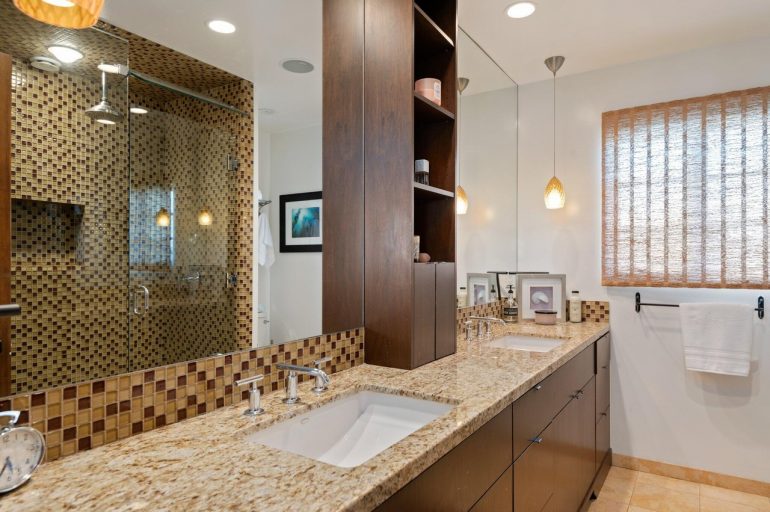 Another spec reno is on hand at 411 San Roque Road ($2.795 million), for which the seller paid $1.29 million in January 2021. It’s less aesthetically successful than the Samarkand one, and on a relatively busy street, but in a more popular neighborhood. P.S. The motivational bathroom reminds me of this commercial.