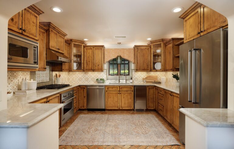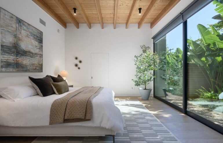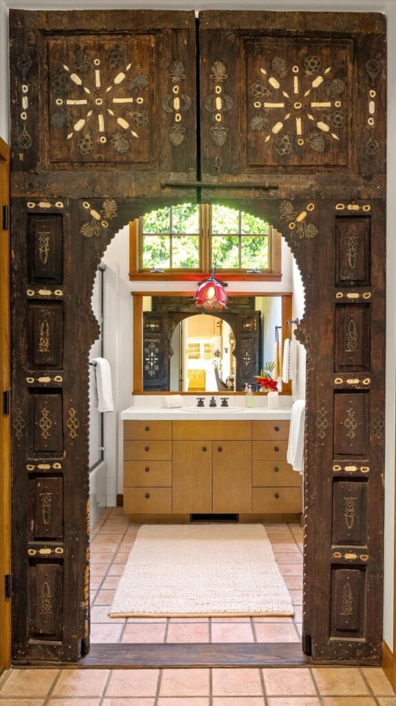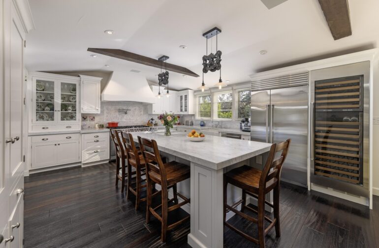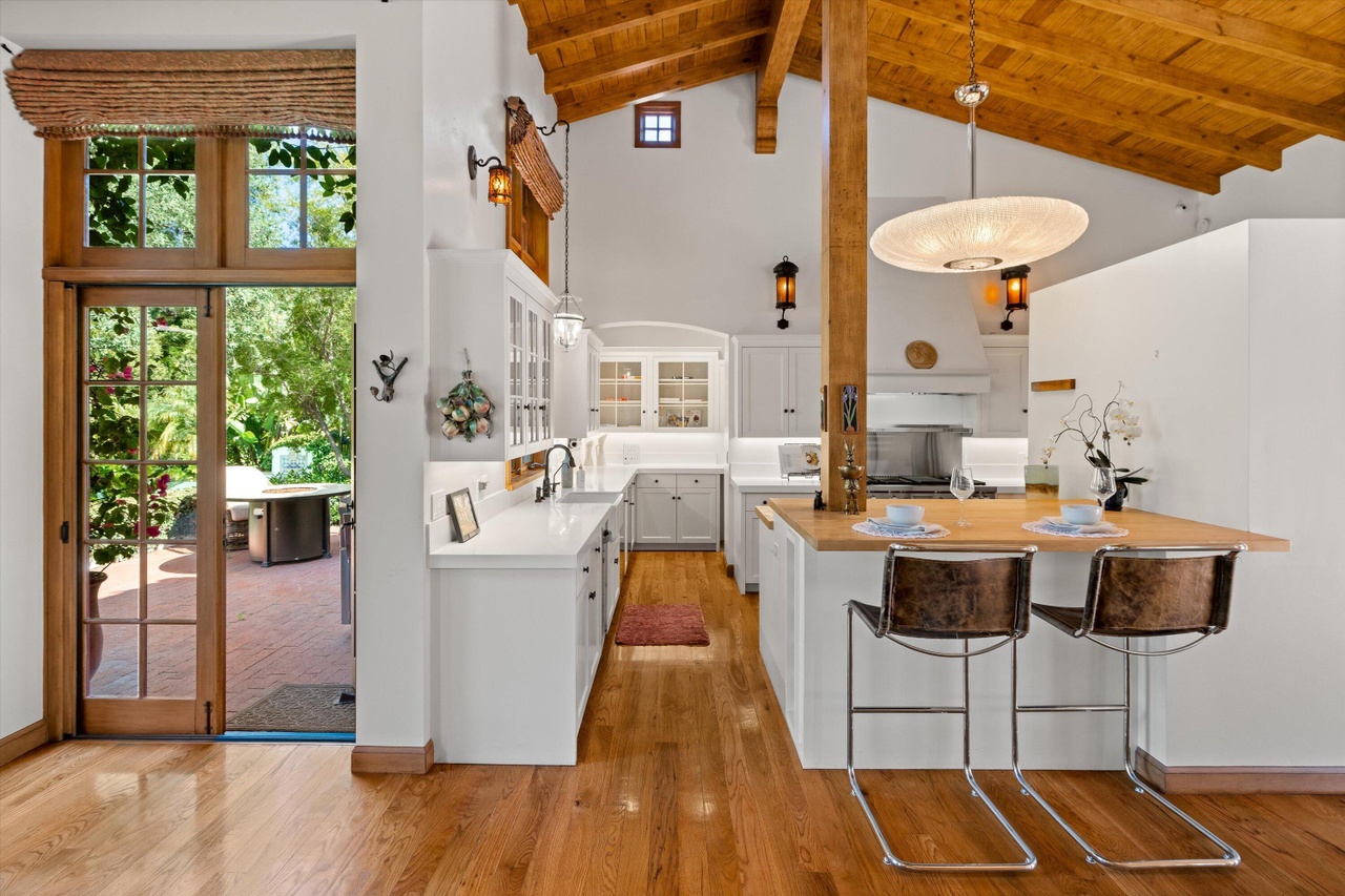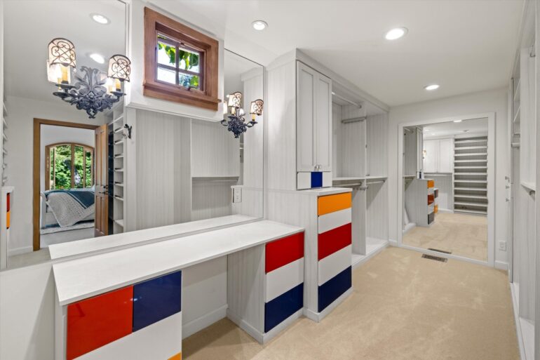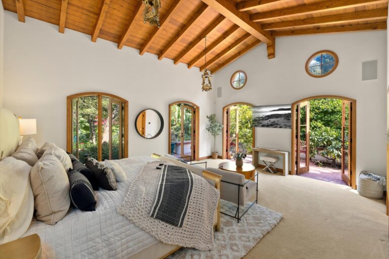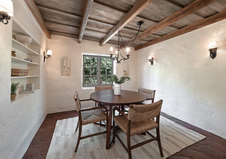 Location is the main appeal of 486 Cota Lane ($6.749 million), a hop and a skip from the Upper Village. It also has a nicely airy living room and primary bedroom, as well as a pretty pool area. Interiors could use a redo—unless you’re into the random Moroccan door and the closet giving off Hot Dog on a Stick vibes—and in my opinion, the kitchen layout wants to be rethought to avoid the clunky fridge/closet.