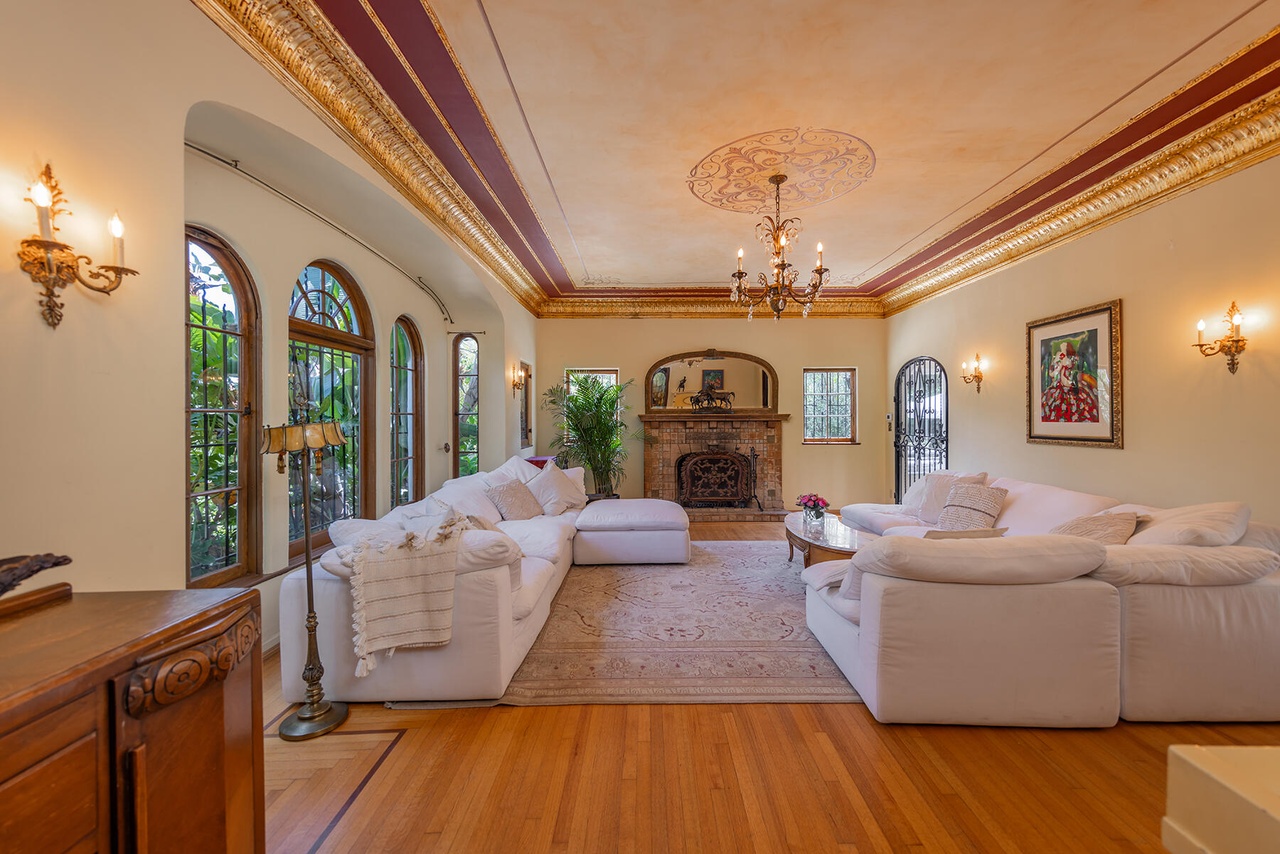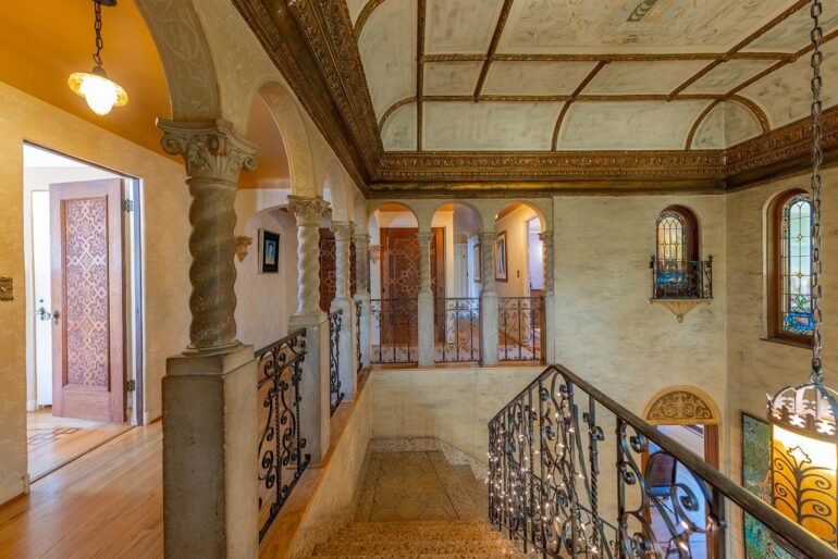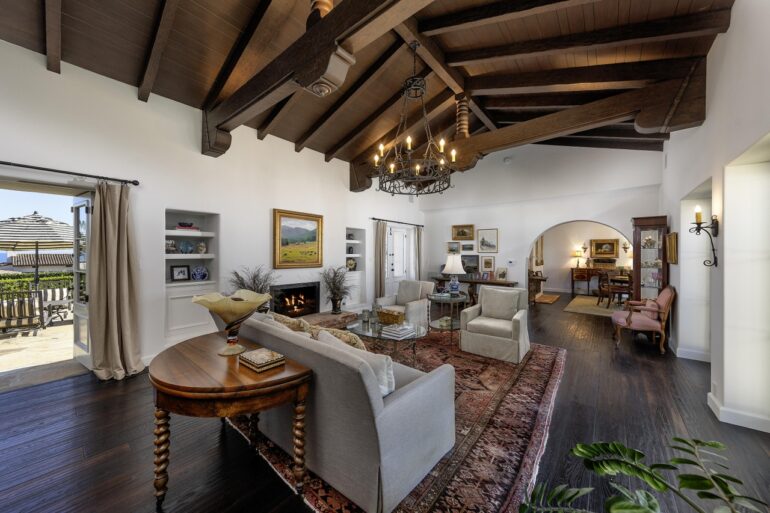 The 1930 Edwards and Plunkett hacienda at 1800 El Encanto Road ($7 million) is full of magical moments, two standouts of which are the extravagant courtyard and the dazzling roof deck. The discreet main entrance is off Mira Vista Avenue, but there’s also a gate on El Encanto Road, with the famed hotel a few houses away. The only wrinkle in an otherwise fabulous Riviera property is that a previous owner sold off the two guest cottages as condos, and the three structures share some buffer.