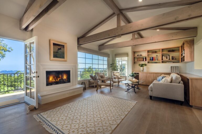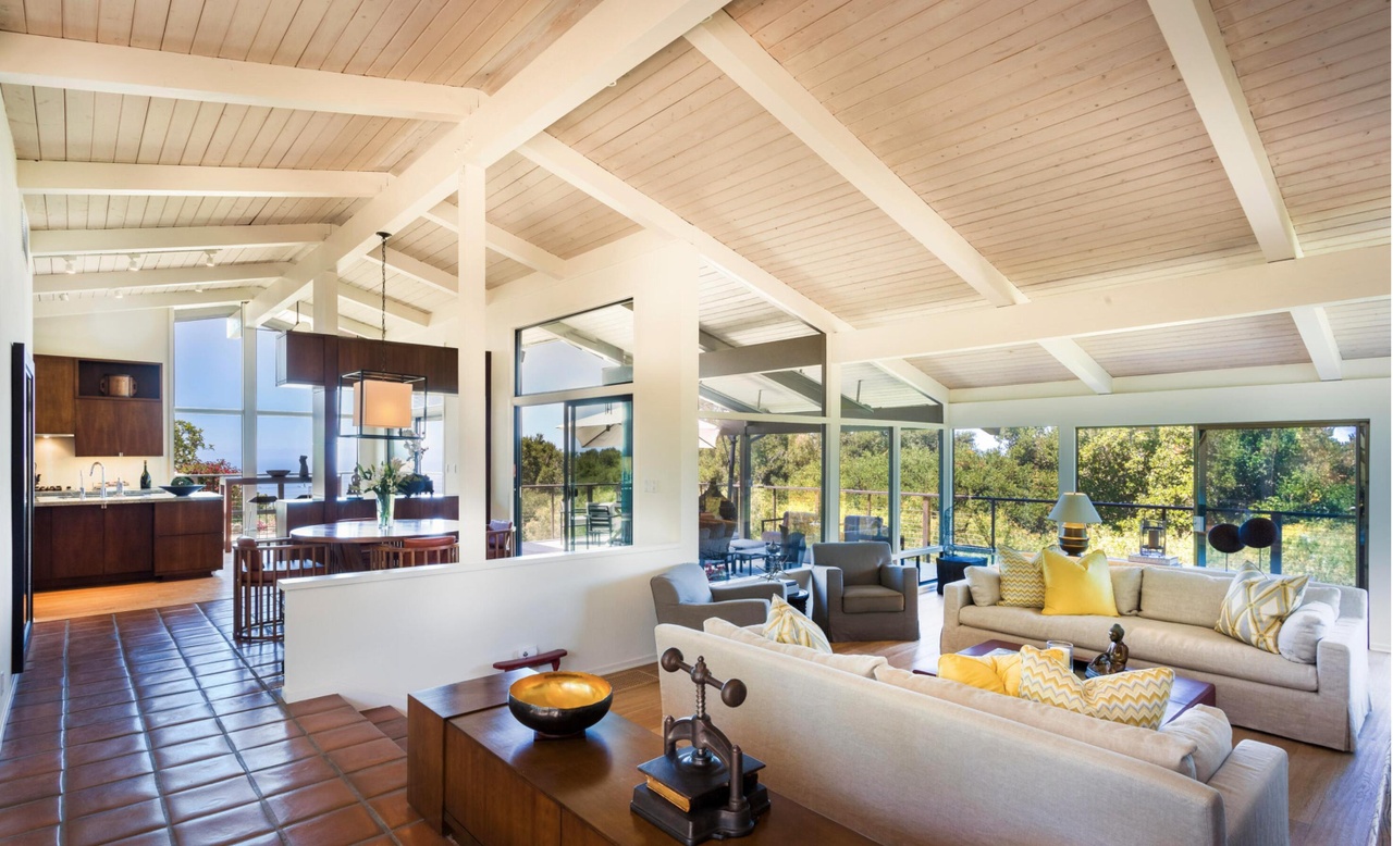 ••• 1429 Alameda Padre Serra ($3.395 million): Love the great room (below), but other parts of the interior fall flat, and the primary bathroom is open to the bedroom.