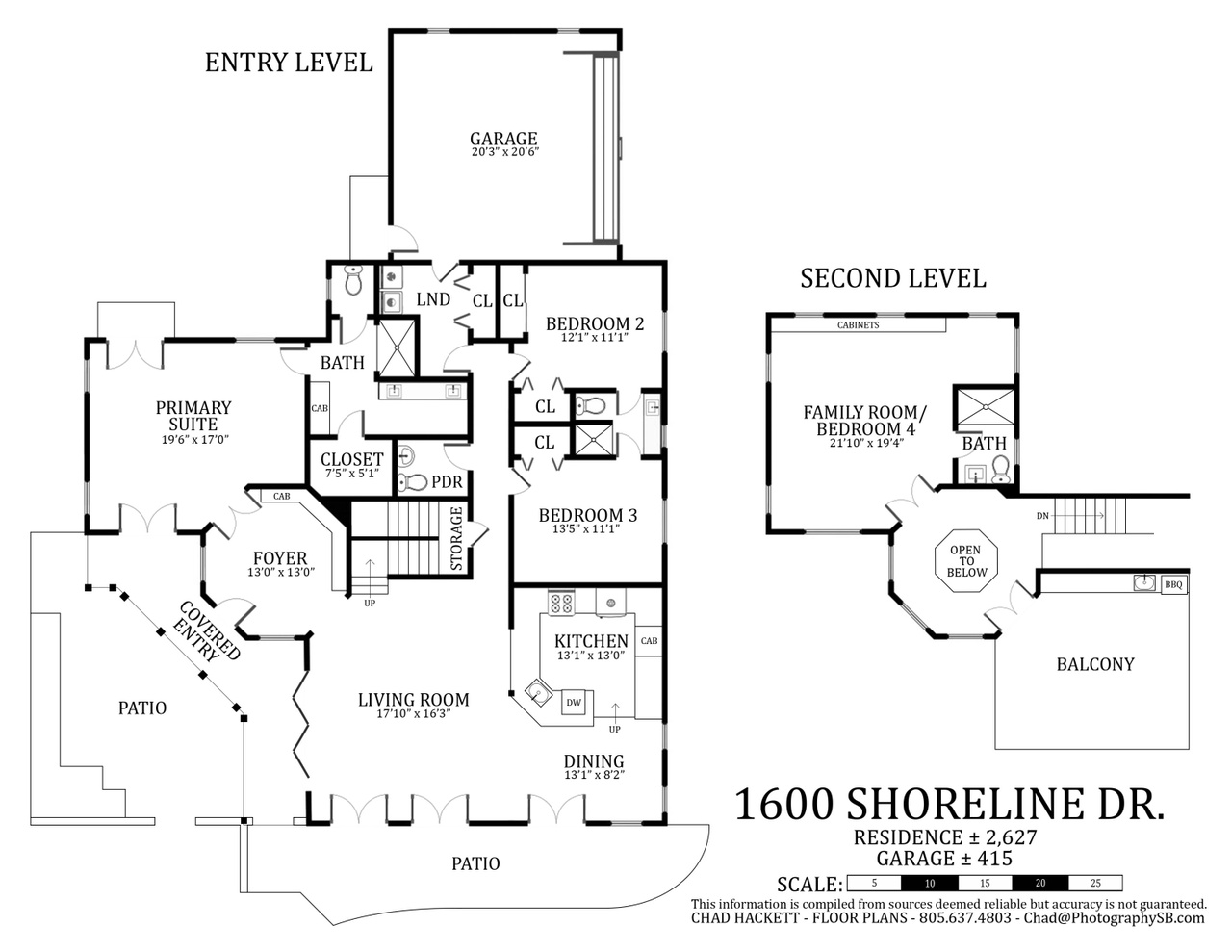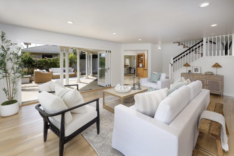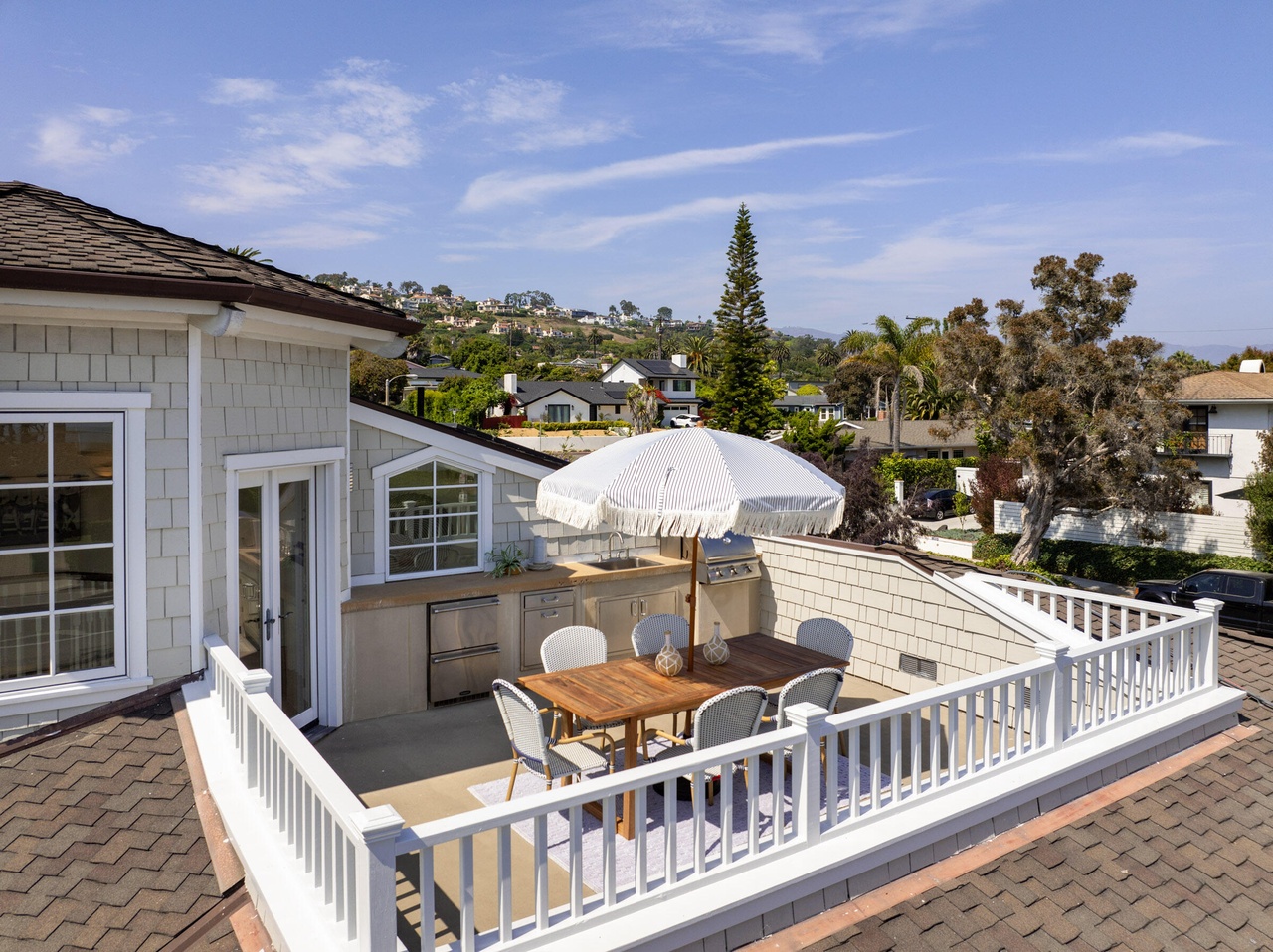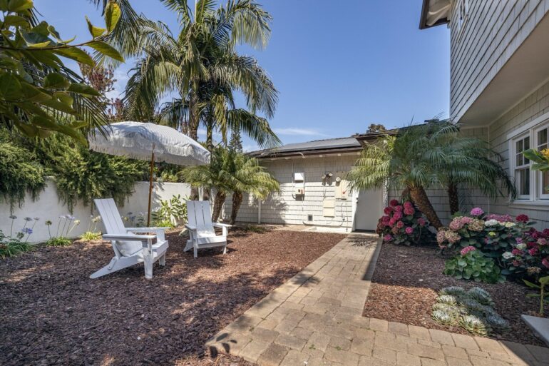 1600 Shoreline Drive ($4.195 million) has real curb appeal, with a unique roofline, a front terrace that’s very of the Mesa, and a second-story deck with outdoor kitchen. The floor plan, however, feels less than ideal: sure, there’s a ground-floor primary, but it’s right off the foyer; the pinch point in the kitchen is an argument waiting to happen (and that step is a hazard); and some of the most prime square footage—the second-floor, ocean-view space above the foyer—is rendered useless by a cut-out in the floor. Location will likely carry the day, though. P.S. Who wouldn’t want to spend quality time amid the mulch?