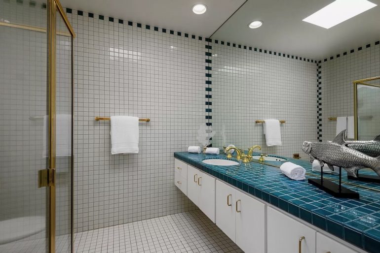 One of four Ennisbrook houses that isn’t part of the HOA—so you pay no dues, but you get no use of the facilities—1922 Jelinda Drive ($7.25 million) was built by architect John Kelsey in 1984 and sold a year later to the current owners. It has some of the sturdy lines and appealing proportions of 812 Romero Canyon Road, another Kelsey property that sold last month. While that house needed new surfaces, this one has bigger issues—in particular, the baffling sunken kitchen. That said, there’s more potential upside here; the one-acre lot includes a sloped lawn, facing the golf course and mountains, that could be put to much better use. I can see someone taking the property and going 1850 Jelinda on it. P.S. Love the square pool, and the preppy tile in the bathrooms makes me want to spritz on the Polo and pop my collar.