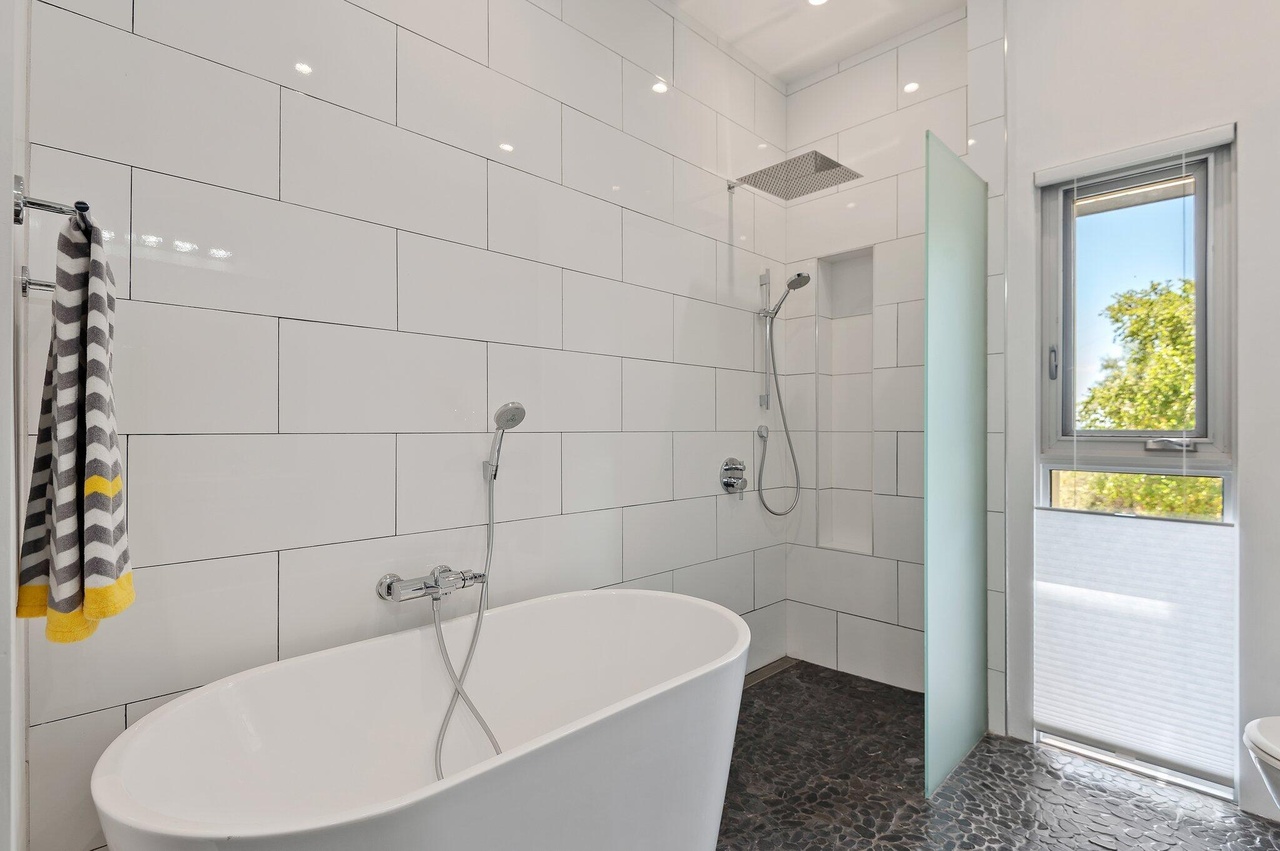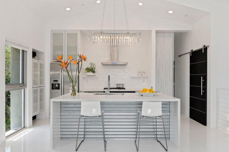 350 Conejo Road ($2.85 million) makes you wonder how someone who clearly adores white would also allow anything but white towels on the premises. The slick floors and corrugated metal are a hard sell, but the terrace and balcony have appeal.