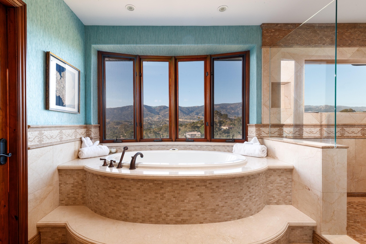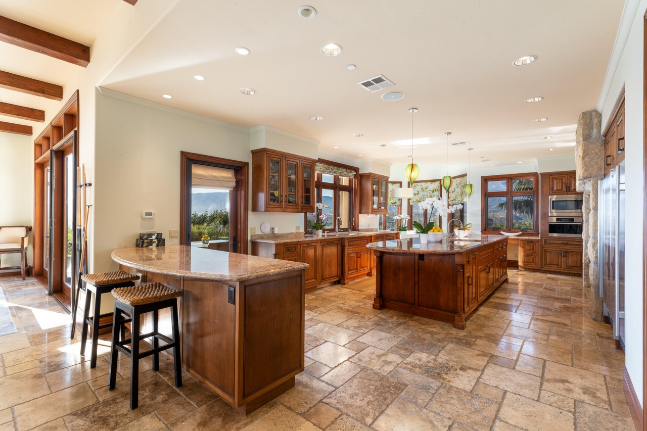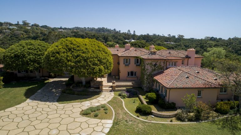 The price of the 2008 house at 4660 Via Huerto ($20 million) in Hope Ranch seems to indicate someone thinks it’s turnkey, but from what I can tell, the recent wave of high-end buyers is not enthralled by the Suburban Tuscan aesthetic. They are fond of size, though, and this is a nice spread (six bedrooms in the 7,588-square-foot main house and another two in the guest house) at the edge of a knoll. Plus, it has been kitted out: “infinity pool/spa, custom skateboard track, playing field, energy efficient systems, solar, Tesla Power Walls, Super charger, and solar hot water heating for the infinity pool.” Not to mention a pool slide!