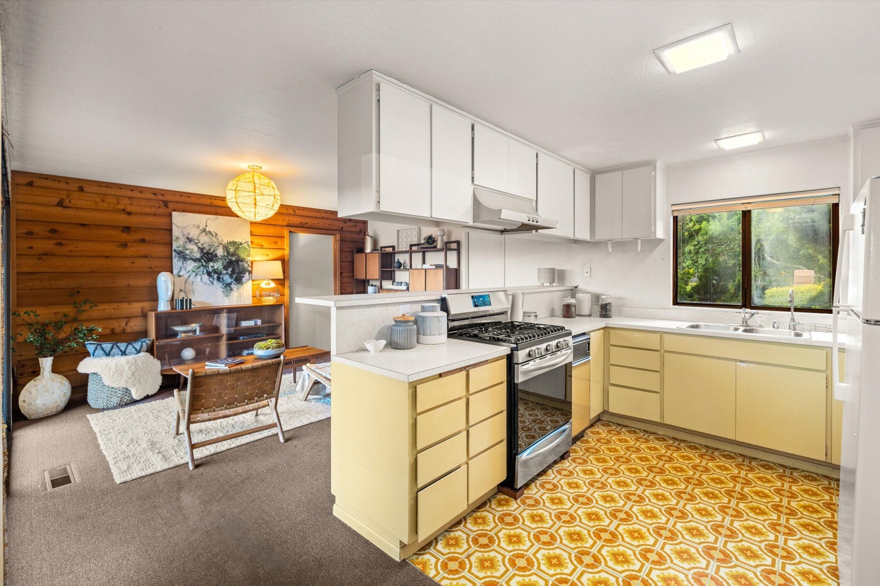632 La Buena Tierra ($2.925 million), off N. Patterson Avenue, has been half redone. The kitchen and great room, with big views in three directions, show how sharp the property could be if the bedrooms and bathrooms got renovated. The plan was to convert the garage into a primary bedroom and build a new garage, which sounds like the right idea—as long as the neighbors’ goats don’t pose an issue.