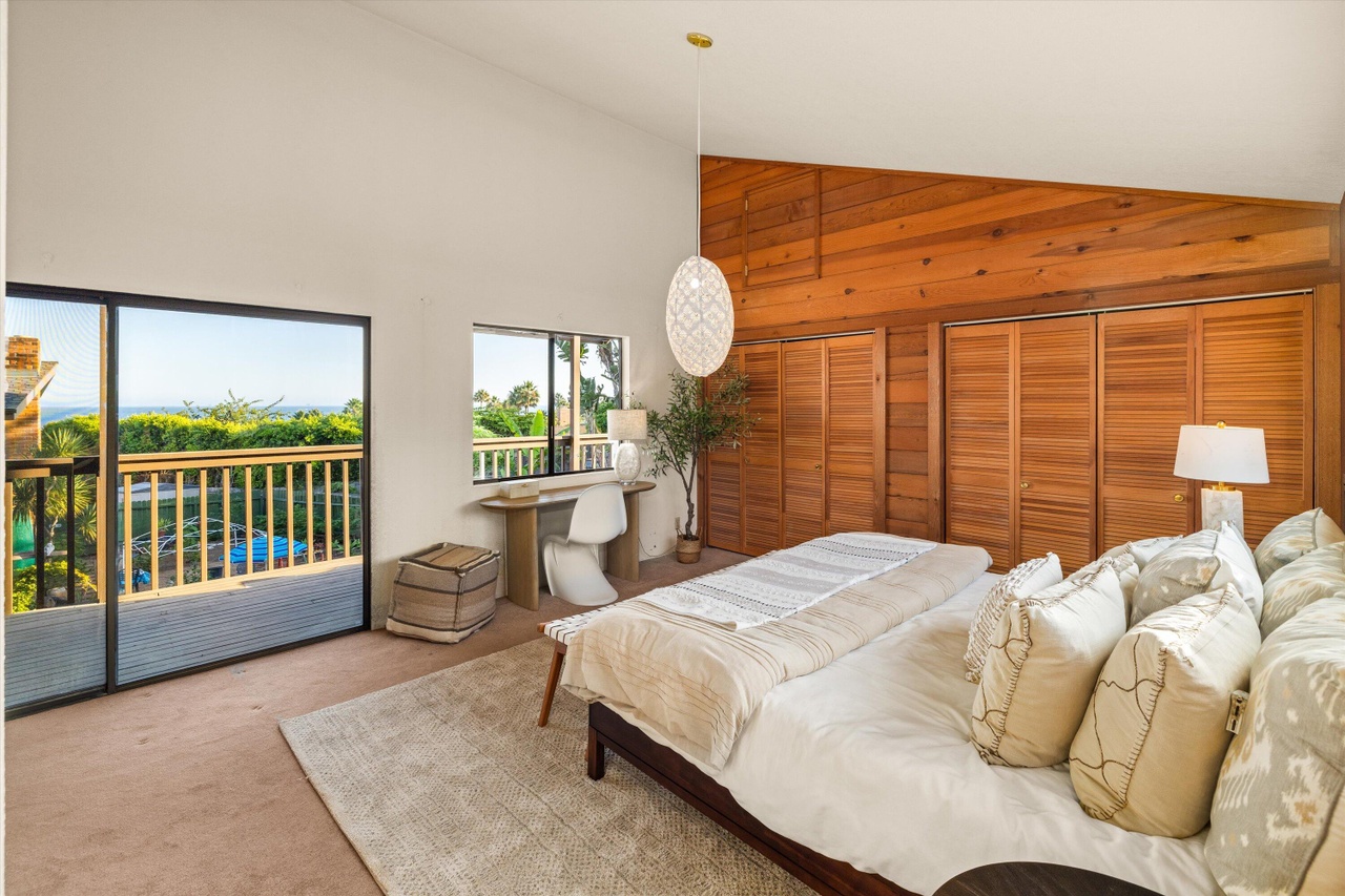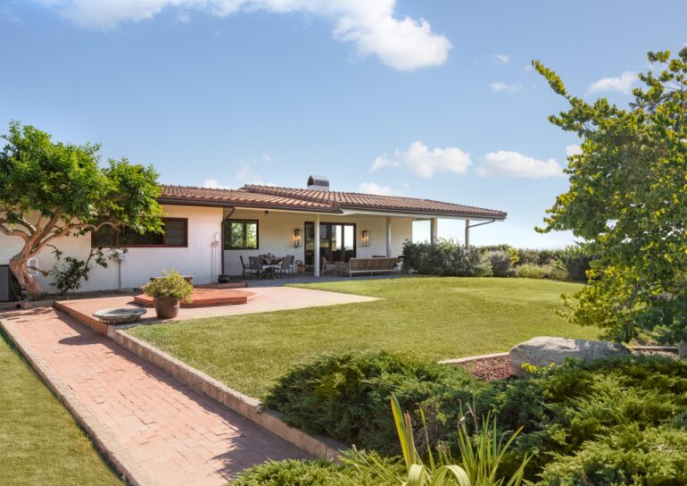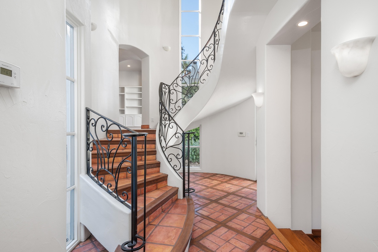 The entry to 1230 Northridge Road ($4.525 million), in the hills above San Roque, is dramatic and romantic: you go through a porte cochère and into a large courtyard. The living areas are on the main floor; below is a huge guest apartment (or rec room), and above is the primary bedroom and, at the other end of a pretty, many-windowed hallway, three guest rooms. (And above that, in the tower, is a small room for reading, meditating, or just getting away from everyone.) The house is fun to explore, and it would work well for a family. I just wish that the main level had more outdoor space. If I could turn back time, I’d put the garage doors on the street side and use the courtyard as a sumptuous terrace.