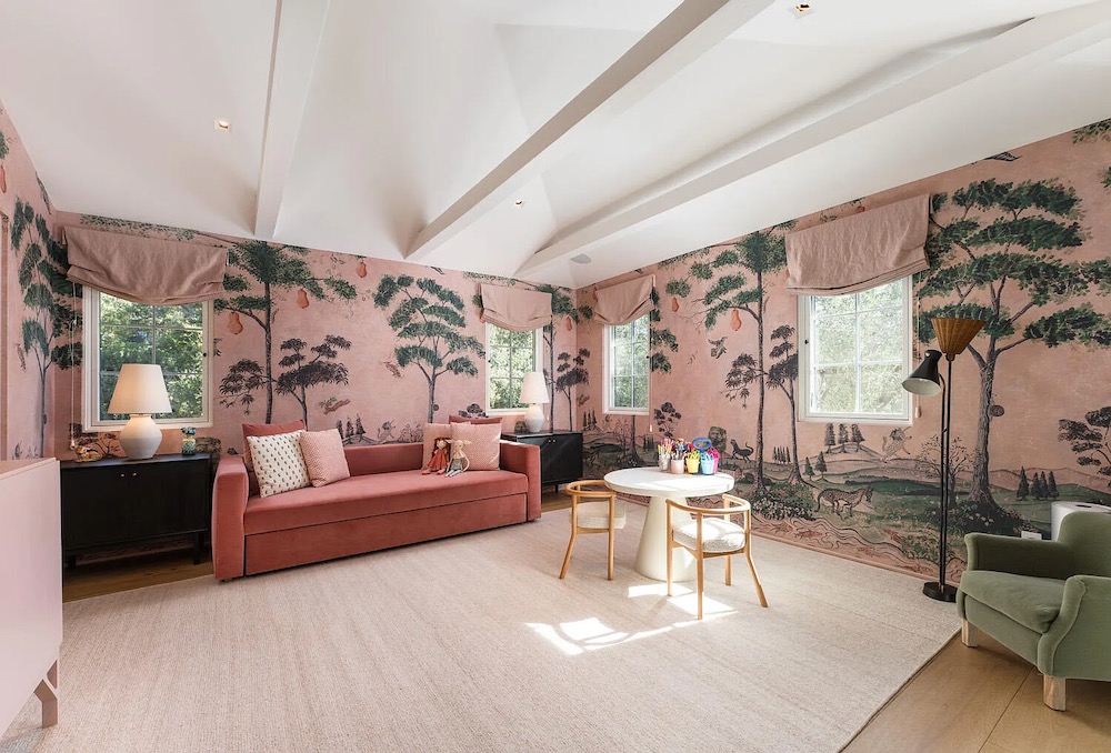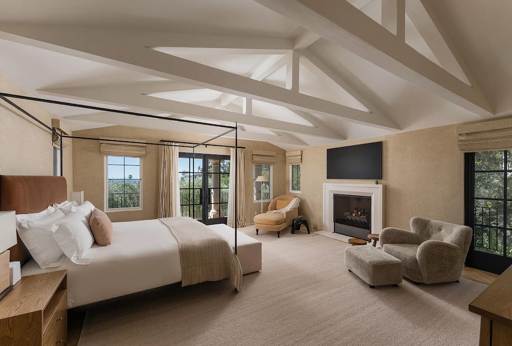 Another attractive renovation is on view at 166 Butterfly Lane ($6.195 million), where a 1924 Spanish Colonial has been given a 2023 makeover. (That bathroom sink is adorable.) The house is just 2,358 square feet, and the guest room situation is less than ideal—the one downstairs is off the kitchen, and the two upstairs share a hallway bath. In the property’s favor, it’s turnkey, and the Coast Village area has been white-hot in recent years, with demand far outstripping supply. The seller, who clearly has a thing for wallpaper, paid $3.9 million in August 2021.
