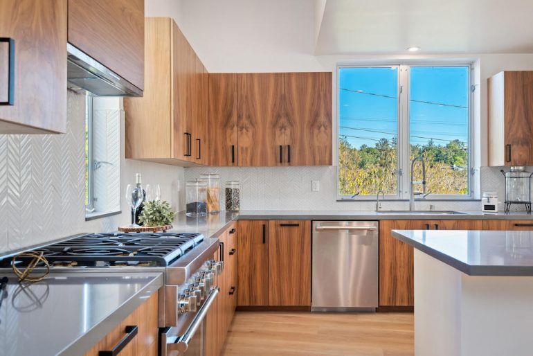 The jury is out whether the Brutalist new-build 523 Conejo Lane ($1.595 million) works. Maybe you have to see it in person. The open kitchen has appeal, though. / Open Sunday, 1-3 p.m.