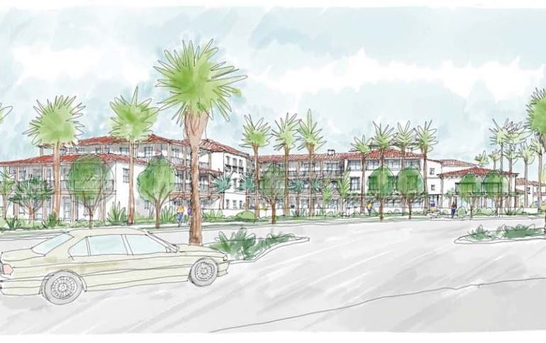 ••• The large hotel coming to 101 Garden Street in the Funk Zone had been on hold, but it looks like going to start progressing again. A recap From the agenda of tomorrow’s Historic Landmarks Commission, when the project’s archaeology report will be presented: “The project consists of a new 250-room, 231,300-square foot (net) hotel located on a 4.53-acre site at the southwest corner of Garden and E. Yanonali Streets, in El Pueblo Viejo Landmark District. […] The hotel would consist of 119 standard guestrooms and 131 extended stay guestrooms. Amenities for the hotel guests would include restaurants, bar, lounge, library, media salons, meeting rooms, fitness rooms, market, laundry rooms, a pool, and a roof deck with trellis. A total of 267 parking spaces would be provided (39 surface and 228 in an underground parking garage). All existing structures and uses on the site would be removed.” The presence of laundry room implies this won’t be especially high-end, but you never know. My understanding is that the project is months from making a more substantial presentation to the HLC; the Cearnal Collective rendering shown here is a bit out of date, but close enough for now.