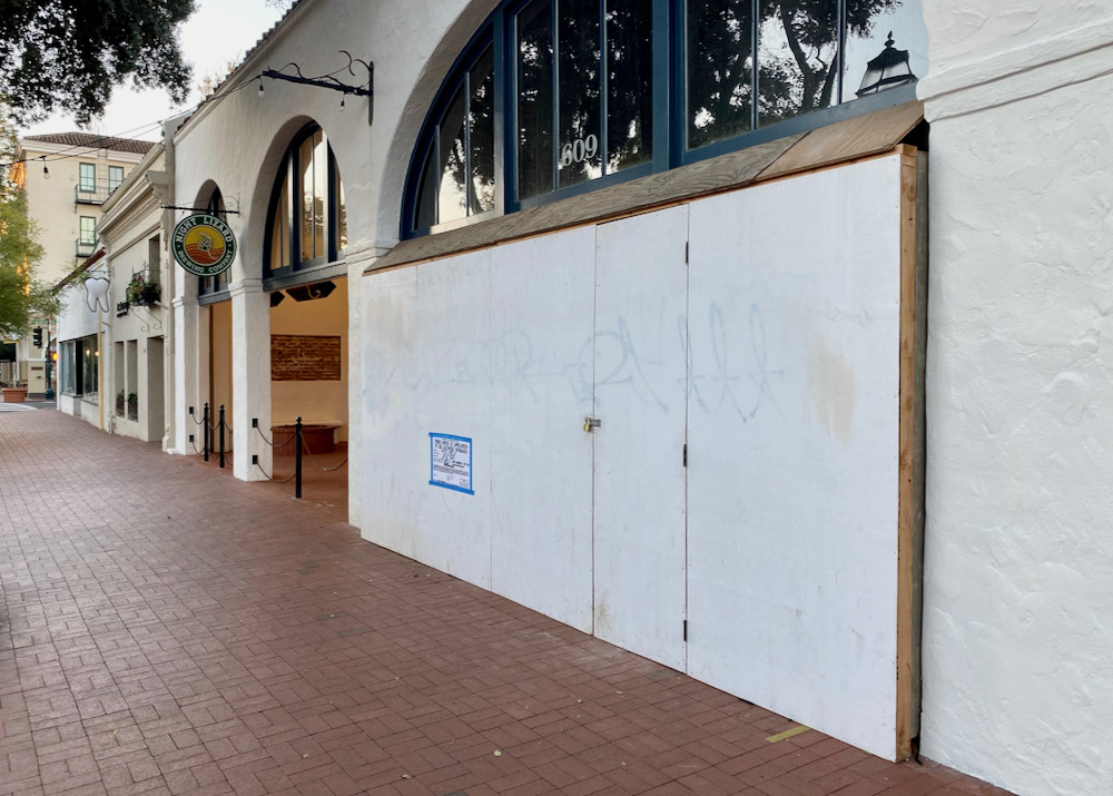The former Casa Blanca and Fit Buddha parts of the Andalucia Building at State and E. Gutierrez are being turned into a complex with a bar; a kitchen; spaces on the floor plan labeled “food vendors, “bakery/coffee/dessert,” and “wine”; 3,400 square feet of seating area; a “lounge”; an outdoor “event area”; a 900-square-foot “display space”; and trellised outdoor seating. On the plans submitted to the city, the owner is listed as Bryan Maroun, who was most recently the general manager of Sunstone Winery; a liquor-license application has yet to show up in the state’s online database. Opening forecast: Unknown, but construction appears to be underway.