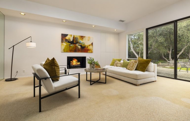 While 36 Seaview Drive ($7.75 million) is not in one of the oceanfront buildings of the Montecito Shores condo compound, it does have the benefit of looking out over the Sea Meadow community rather than at its sister structures. (If you’ve ever walked Hammonds Beach, you’ve probably marveled at the 1970s-style architecture bumping shoulders with English pastiche.) The unit is also on the top floor, with vaulted ceilings and a loft office, and 3,000 square feet with three bedrooms. And you still get deluxe ocean views. P.S. Love the bar area.