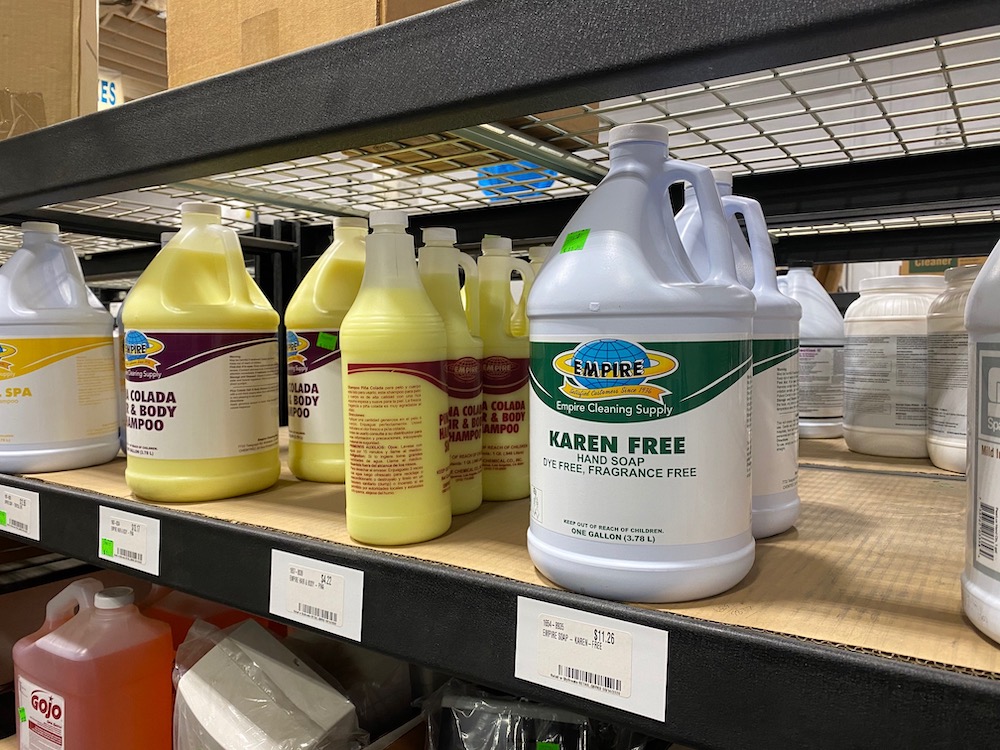 ••• We had a new house with a garage temporarily filled with furniture—and a suspect roof above it—so we needed a cheap tarp before the storm arrived. That was a good enough reason to visit Empire Cleaning Supply, which I had once wandered into by accident. It’s in a warehouse on Garden, south of Yanonali, and it shares space with parent company Aramsco (which sells/rents cleaning machines and the like) and Pacific Paper. Maybe it’s just because I’m a fan of offbeat places, but I love it.