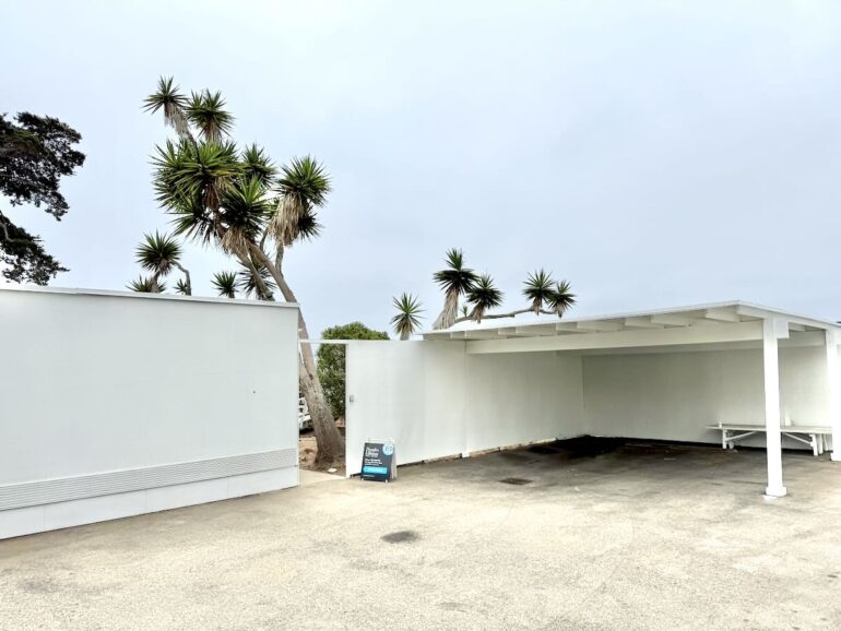 On the bluff’s edge directly east of the Thousand Steps, a 1971 two-bedroom in the shape of a hexadecagon (16 sides), with the wedged-shaped rooms radiating around the center.