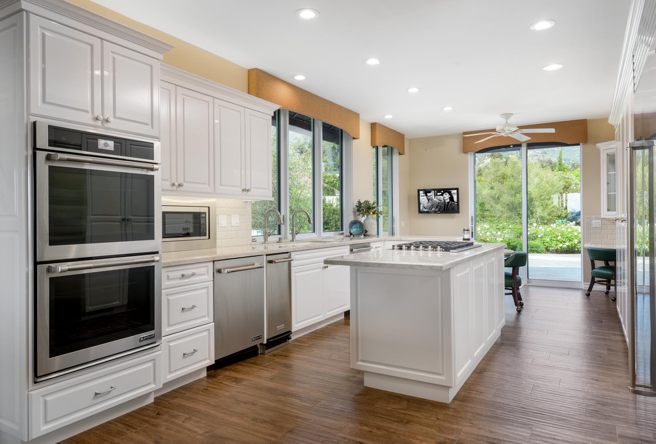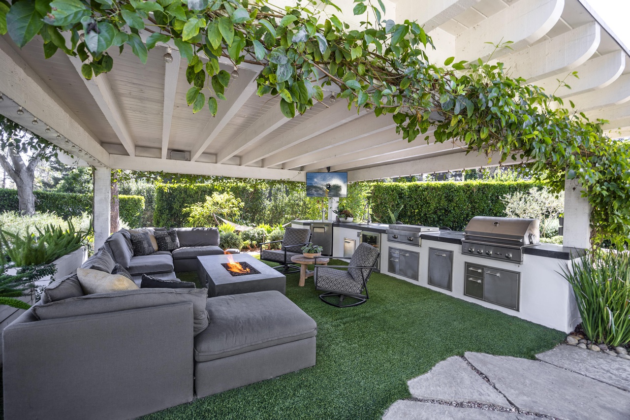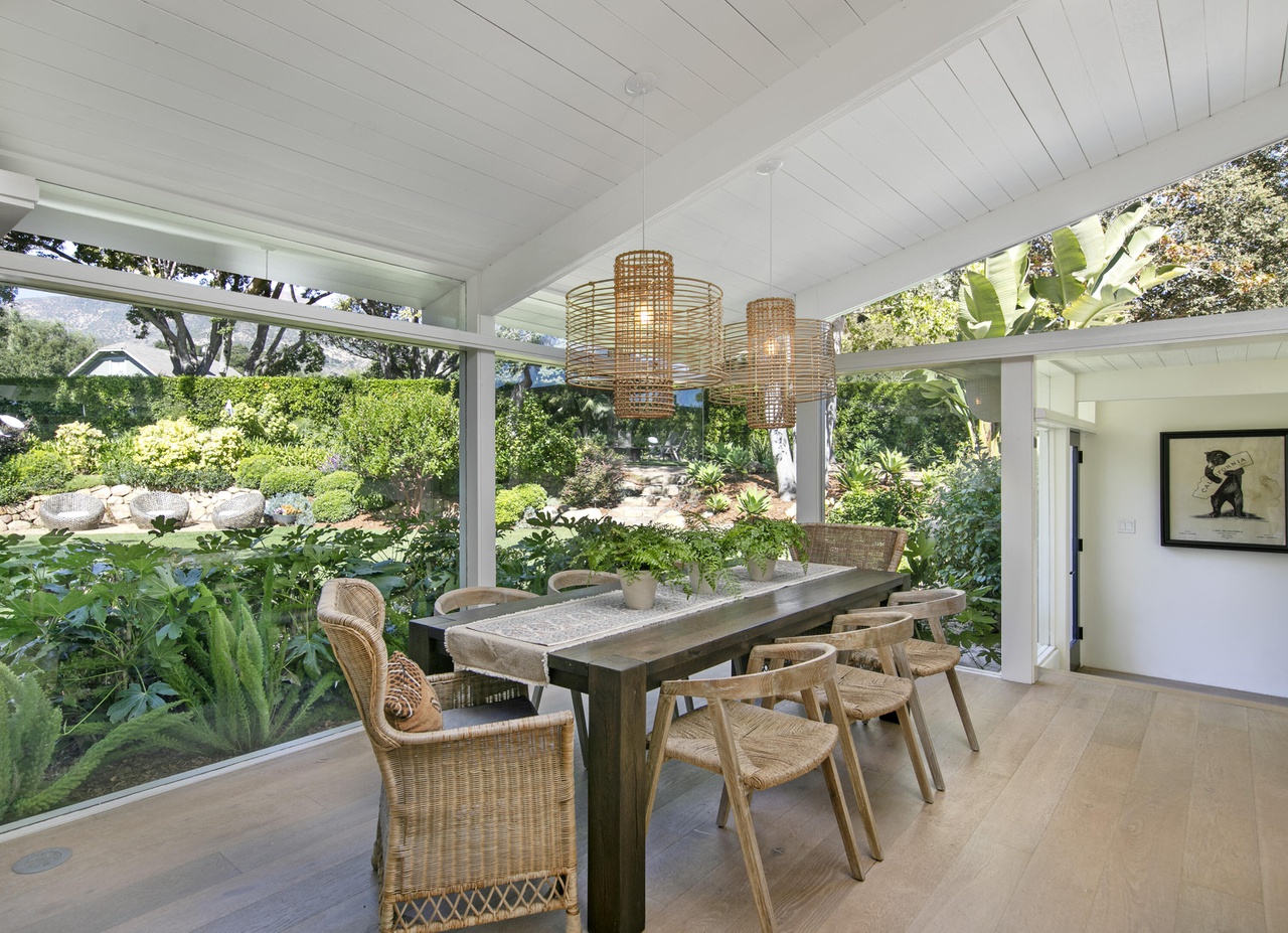 On the kinked part of East Valley Road next to Knowlwood Tennis Club, 1641 East Valley Road ($5.5 million) has midcentury style, a new ADU, and quite the outdoor entertaining pavilion. I have to imagine, however, that you’ll hear activity at the club.