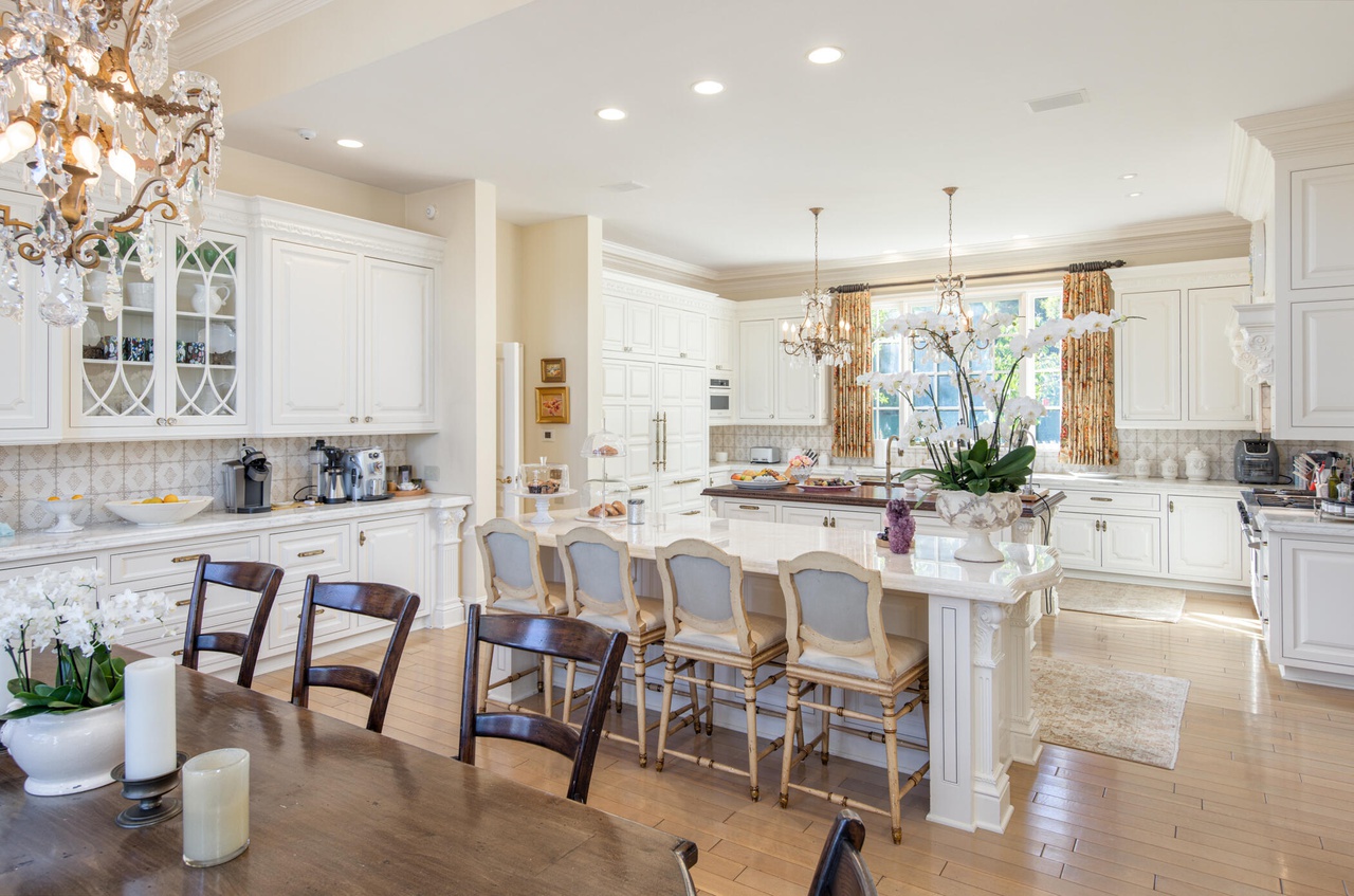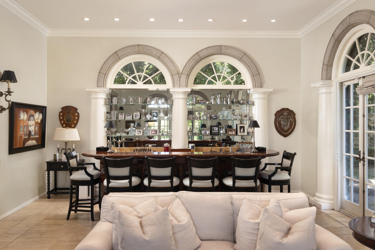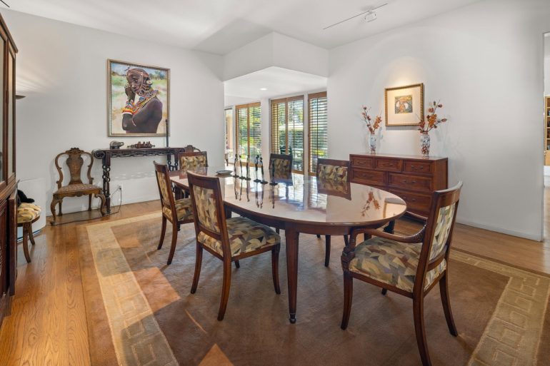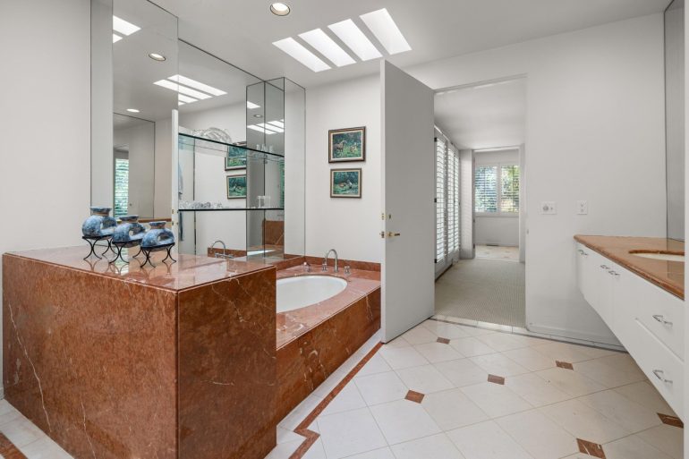 Three doors down is 750 Picacho Lane ($12 million). The lot is only .85 acre, and the house is closer to the road that one would like, but there’s potential in the boxy 1989 architecture—while surfaces would benefit from updating, at least most of the floors are wood.