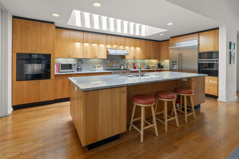 The price of 2097 Stratford Place ($6.75 million) is possibly a deal for Birnam Wood these days, where non-fixers have recently traded for $8 million and up. The traditional interiors are a surprising match for the contemporary exterior, but you have to admire the commitment of an “indoor and outdoor sunken bar.”