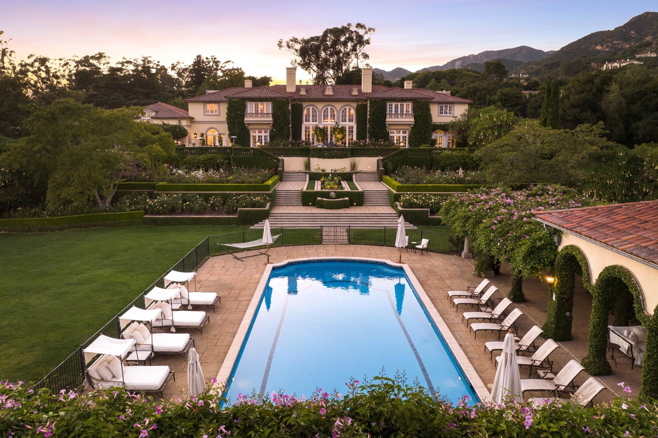Ellen DeGeneres and Portia de Rossi bought 319 San Ysidro Road ($46.5 million), a.k.a. Pompeiian Court, in June for $22.5 million. Is it even possible to add $24 million worth of value in four months? They certainly make a compelling case, stripping the interiors down and letting a little ornateness go a long way. The result is photogenic and glamorous, although sophisticated furniture might be required to stop the all-neutral palette from dominating. (The staging decor can be bought separately.) Eight acres, on which there are various outbuildings, is huge for that part of town (southwest of Montecito Union School). The question is whether folks who can afford it wouldn’t rather be surrounded by like-monied types in the better parts of the Golden Quadrangle.