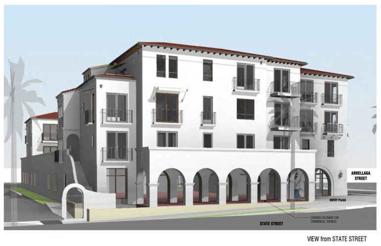 ••• The HLC agenda also has fresh renderings of the mixed-use development at 1533 State (a.k.a. 1529 State), at the corner of Arrellaga, and home to the Isla Vista Food Co-op (a.k.a. where Cantwell’s used to be). The plan calls for 27 units, and the store will be on the State Street side. The design is Spanish, which is not exciting, but there are some welcome decorative flourishes at the edges.
