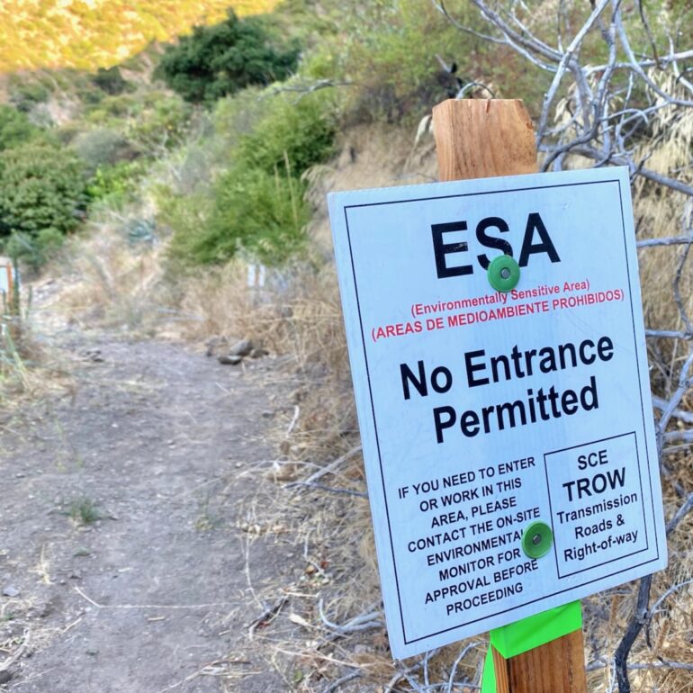 ••• I was surprised to come across this sign on the Edison Catway, at the top of the Hot Springs Trail, since Southern California Edison said full trail closures are unlikely while the road gets rebuilt. I walked right through, and the workers were unperturbed by my presence, so maybe it’s just for liability protection.
