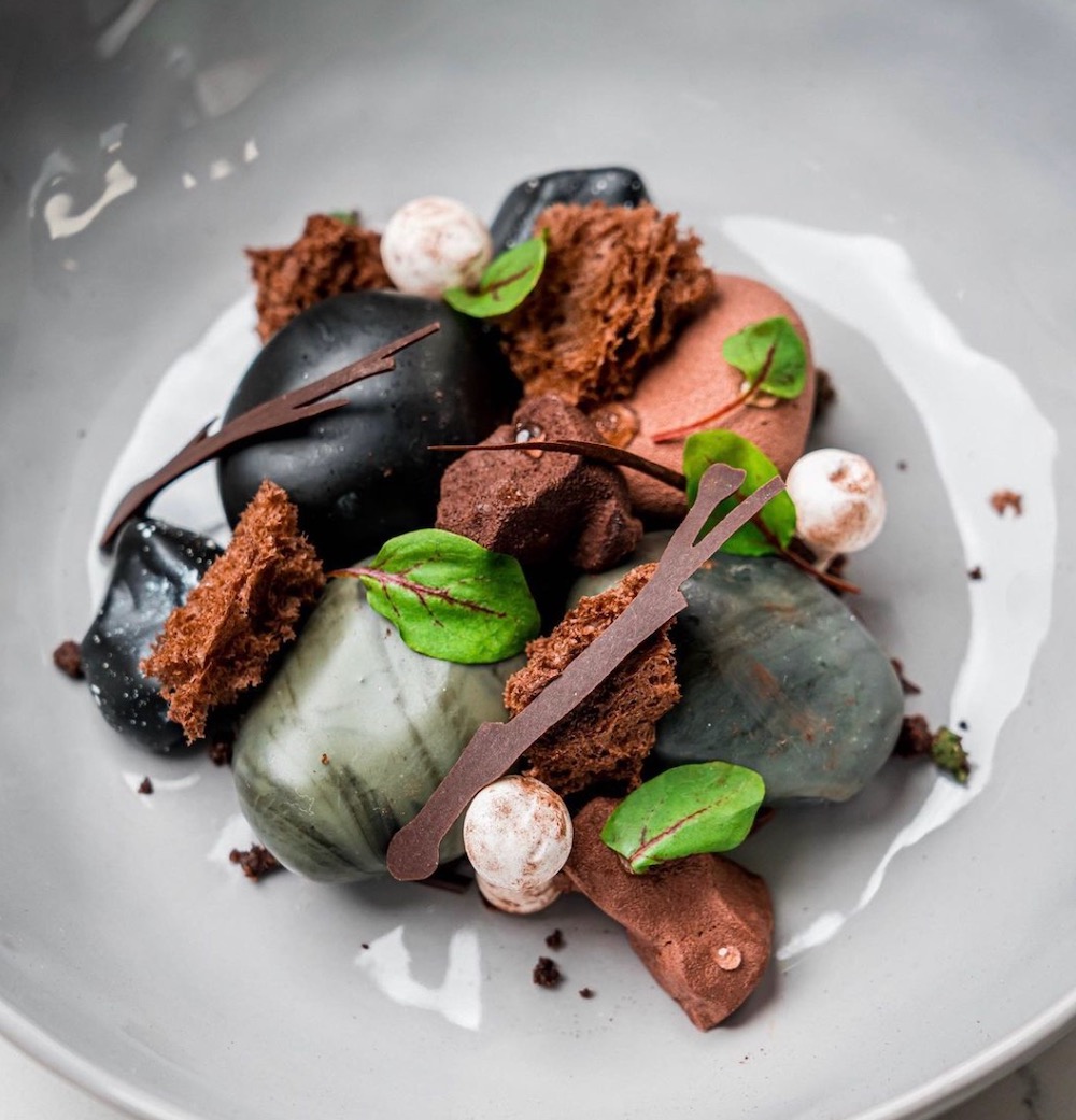 ••• Alessia Patisserie & Café is hosting another of its special four-course “dessert experiences” on March 20. Below: a dish from the last event; photo by Carter Hiyama.