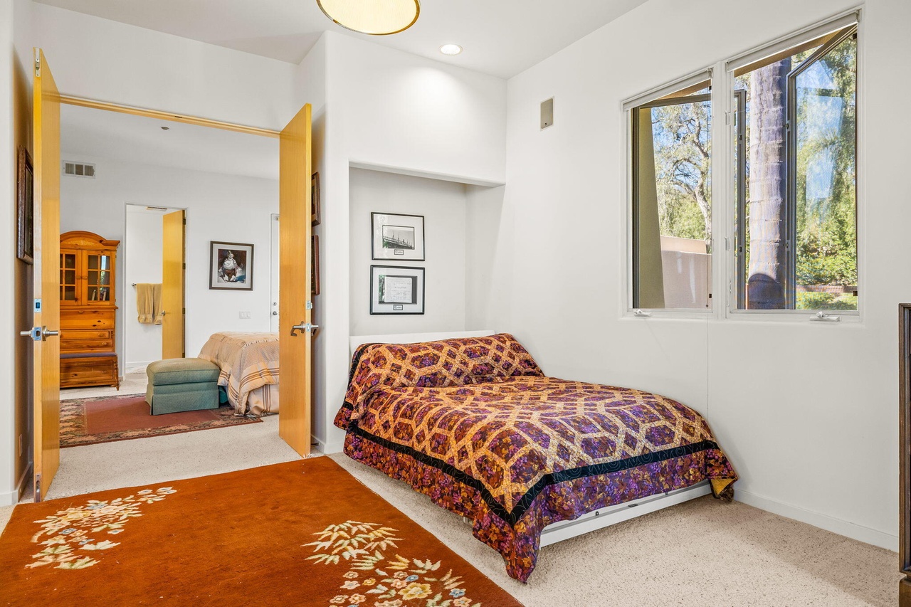 2258 Stanwood Drive ($3.549 million) is another one that needs to be redone. There’s plenty to work with, though: the house is tucked away off the road, and the back terrace looks out over a small ravine. While people with kids might prefer the pool to be off the living room rather than the primary bedroom, the door from the bathroom makes a quick skinny dip in the hot tub much easier.