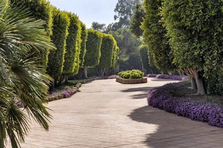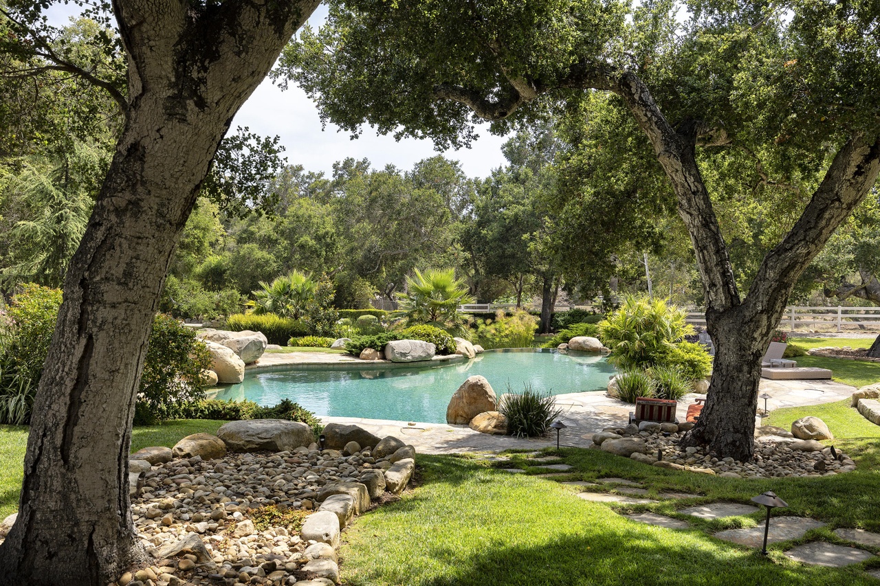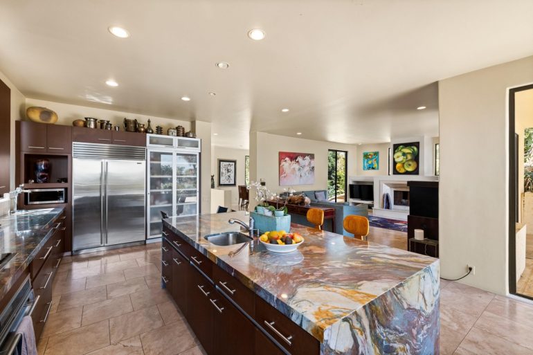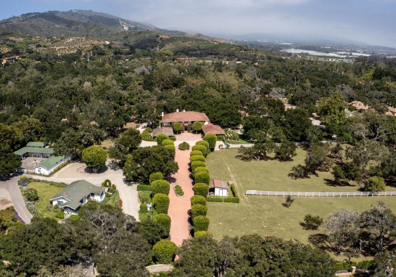 Something similar is going on at 368 Lambert Road ($18 million), west of Toro Canyon: the architecture is not the best of the 1990s, and the interiors could use a refresh throughout. But the land—nearly 10 acres—is prime, with a sexy pool, a three-bedroom guest house, and “numerous horse stalls, pastures, barns, and separate living quarters for on-site workers.” And I’m already on the record as loving the curvy allée leading to the motor court.