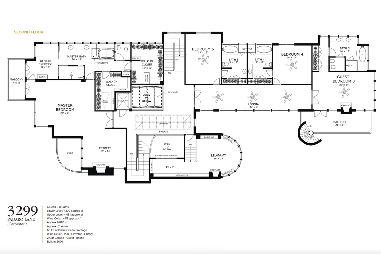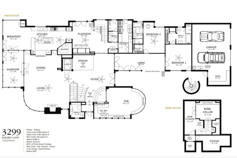 This week’s headliner is 3299 Padaro Lane ($36.5 million), “the longtime home of the late California home builder Paul Griffin Jr., who died last year, and his wife, Gloria Griffin,” according to the Wall Street Journal. “The Griffins, who lived primarily in Los Angeles, bought the property in the 1980s for about $1 million and built the house in the early 2000s.” The location—up above the beach—is ideal (check out the oceanfront hot tub!), and the fact that a builder built it for himself pretty much guarantees quality. That said, the architecture hasn’t aged super gracefully and surfaces throughout the 9,086-square-foot house want updating. Of special note to sports fans: “The pub/game room features […] the Pauley Pavilion gymnasium floor on which the UCLA Bruins were coached to 10 NCAA championships under coach John Wooden—a gift from UCLA to the current owners.” See it for yourself: the property will be open today (Saturday) 11 a.m. to 2 p.m.