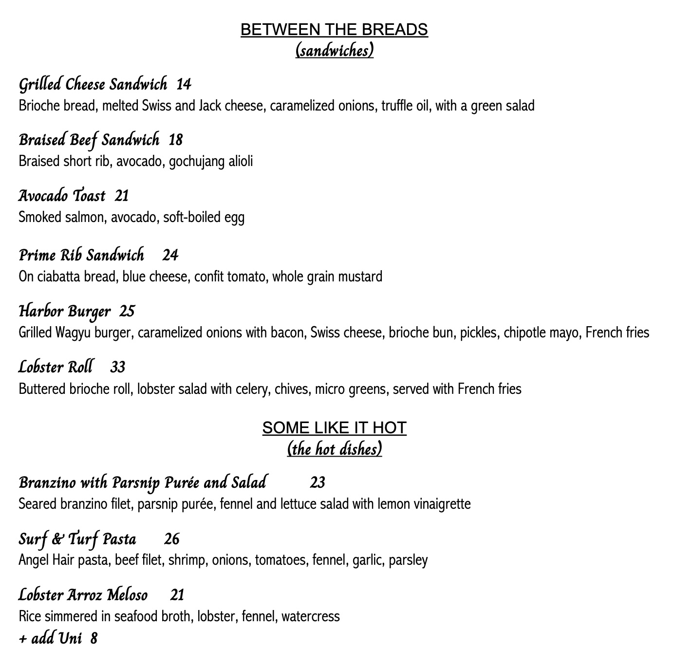 ••• The Harbor Restaurant is now open daily for lunch, and also “offering a limited mid-day menu from 2-5 p.m. at the bar.” UPDATE: Here’s the menu.