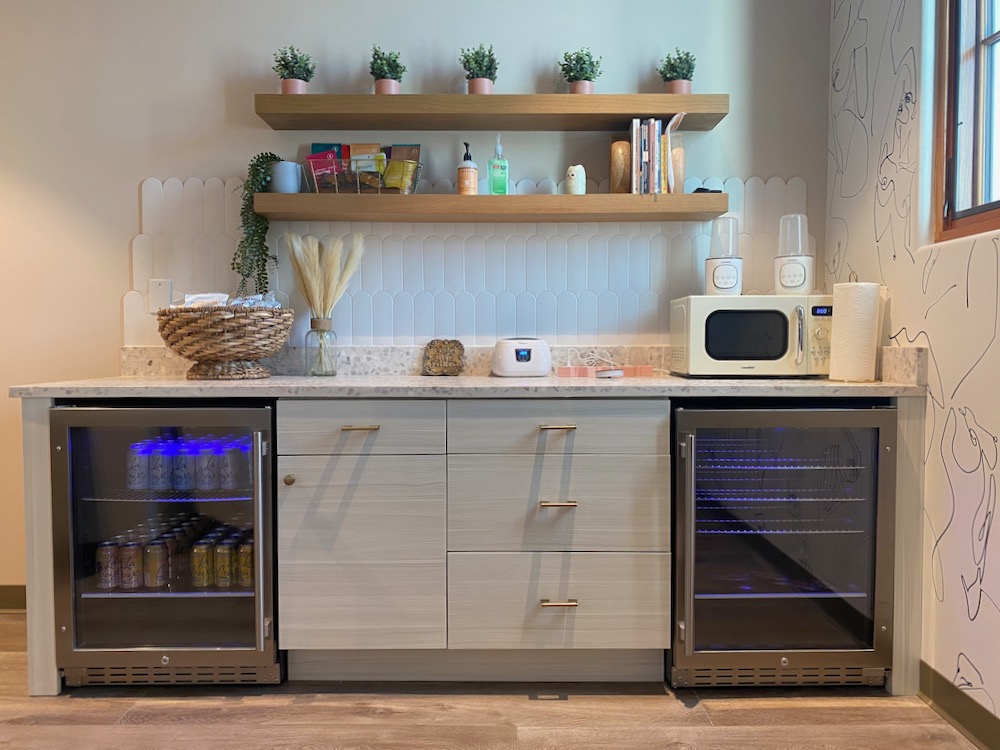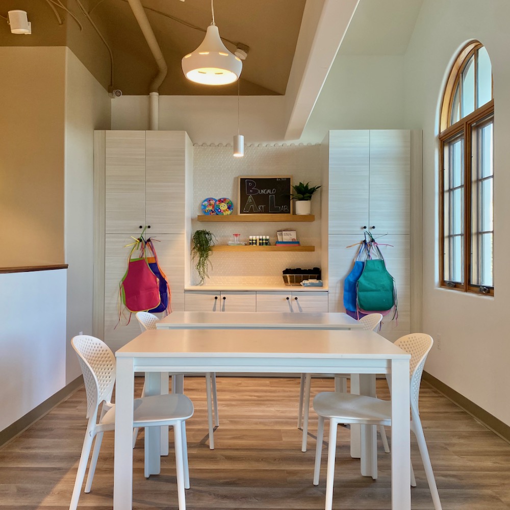 With help from MN Studio and Bottenfield Construction, the 5,000-square-foot building on W. Figueroa (State/Chapala) was transformed into a cool private club for all ages. (There was no choice but to be membership-based, due to the Type 57 liquor license.) Members pay an initiation fee, monthly dues, and an annual renewal fee to help replace furniture and supplies. What that covers: access to the space, of course, as well as self-service food and beverages and programming from the likes of Yellow Bird Music, My Gym, Santa Barbara Dance Arts, Apples to Zucchini Cooking School, the Santa Barbara Zoo, the Crafter’s Library, and more. When there’s no programming, staff members help keep kids entertained. And members can pay extra for food and beverages ordered from the café, as well as services such as massages, chiropractic adjustments, pelvic floor therapy, valet parking, and mani-pedis. (You can’t leave your kids and go run errands, at least not yet. “We’re working toward it,” says Kanaley.)