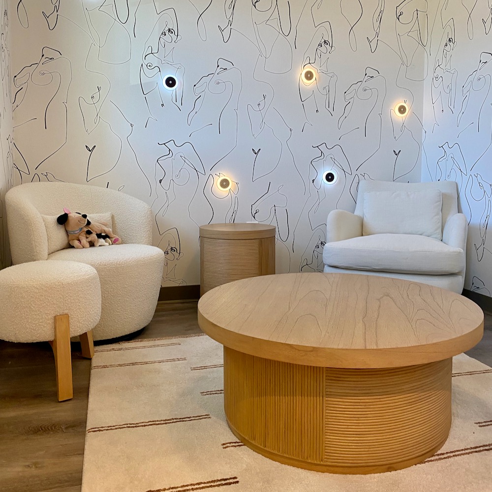 Hi G- Thanks for your feedback. We tried to pull in a lot of conversational pieces that open our minds up to talking about this stage of life, as Grown-Ups and with our Littles. The wallpaper is in the Boobie Lounge which is an oasis for infant feedings, no matter which way it occurs. From breast to bottle, this is the place to embrace!