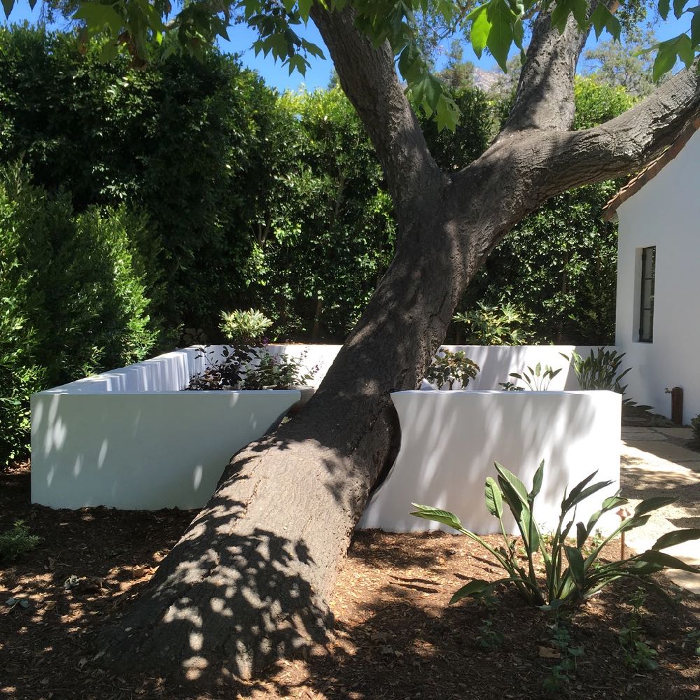 ••• Becker Studios went the extra mile to accommodate an oak tree at the handsome new house at 707 Park Lane in Montecito.