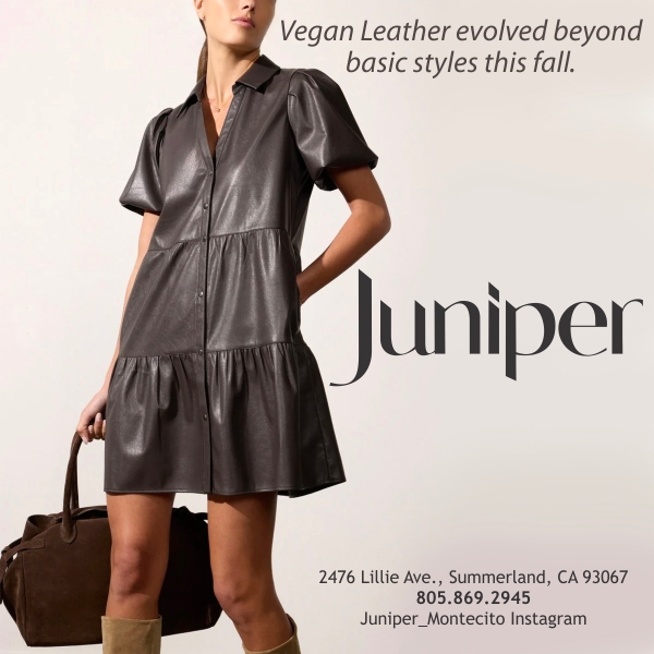 A must-have dominates the runways: Featuring innovative textures, soft matte finishes, high-shine coatings, and colors. Silhouettes come in jackets, pants, dresses, and neon handbags. Come take a look at Juniper at 2476 Lillie Avenue in Summerland.