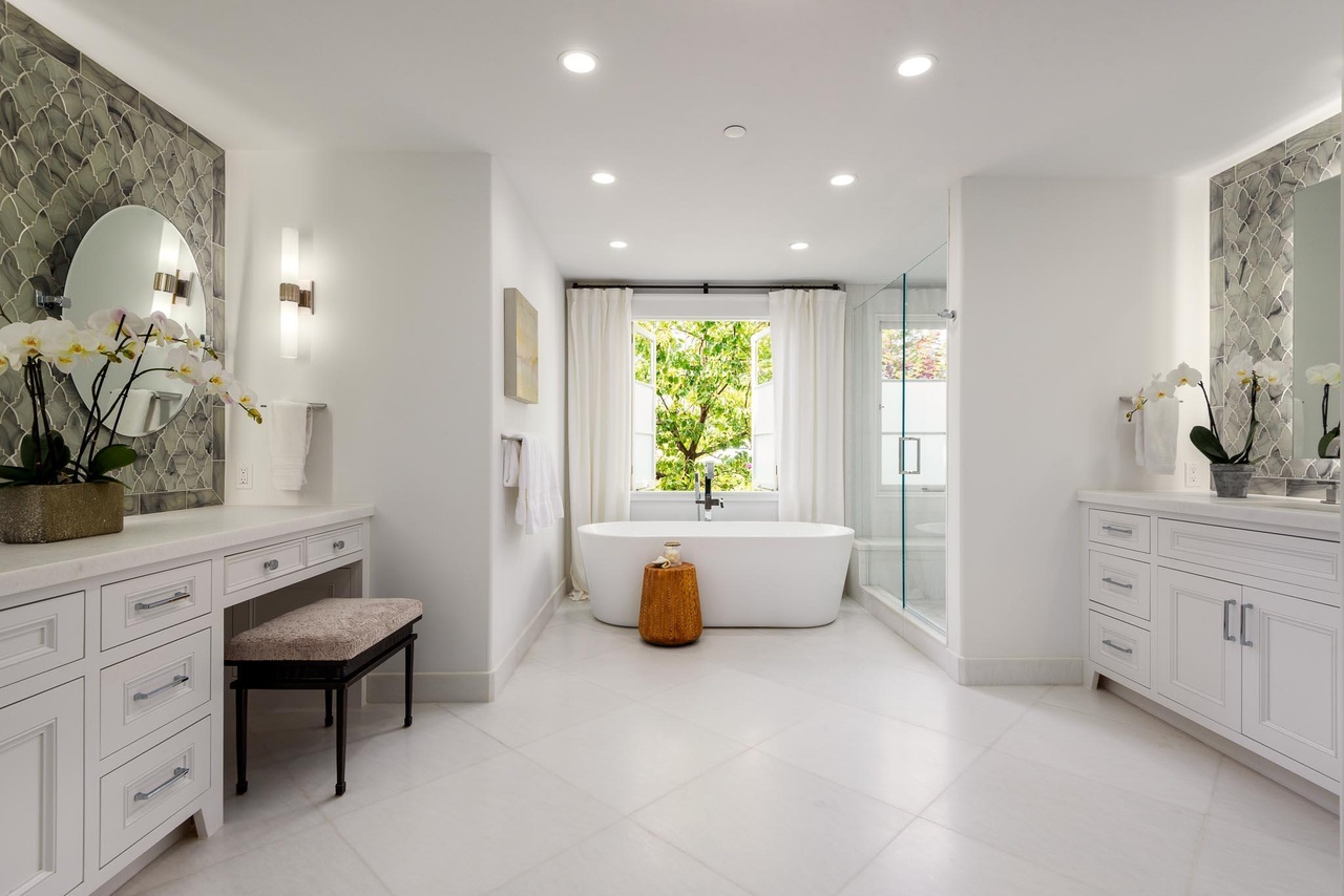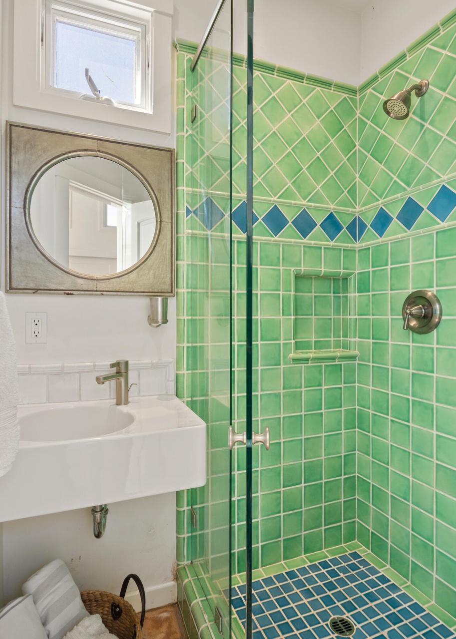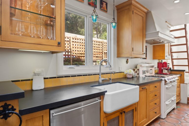 The 1928 house at 1723 Hillside Road ($1.875 million)—”in the highly sought-after Westside neighborhood of Alta Mesa,” if you will—is a peach, with period details throughout. It’s possible that I’ve simply seen too many white bathrooms, but isn’t the green tile in the shower refreshing? P.S. The yard “includes a bocce ball court, a wood-fired pizza oven and an outdoor shower.”