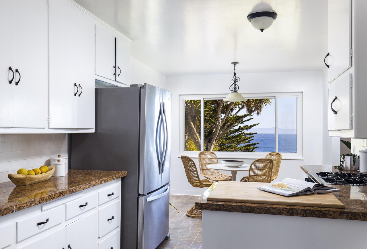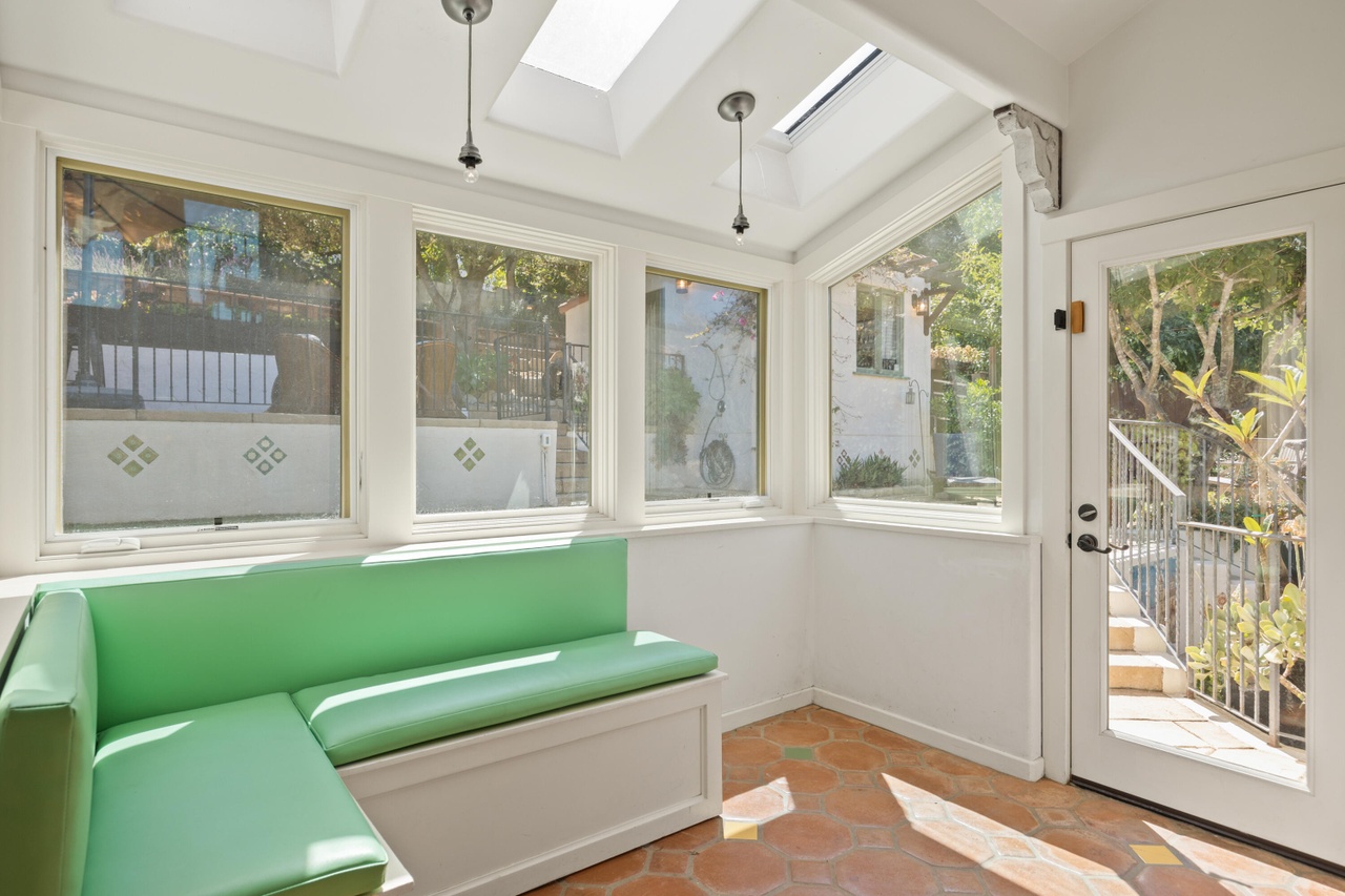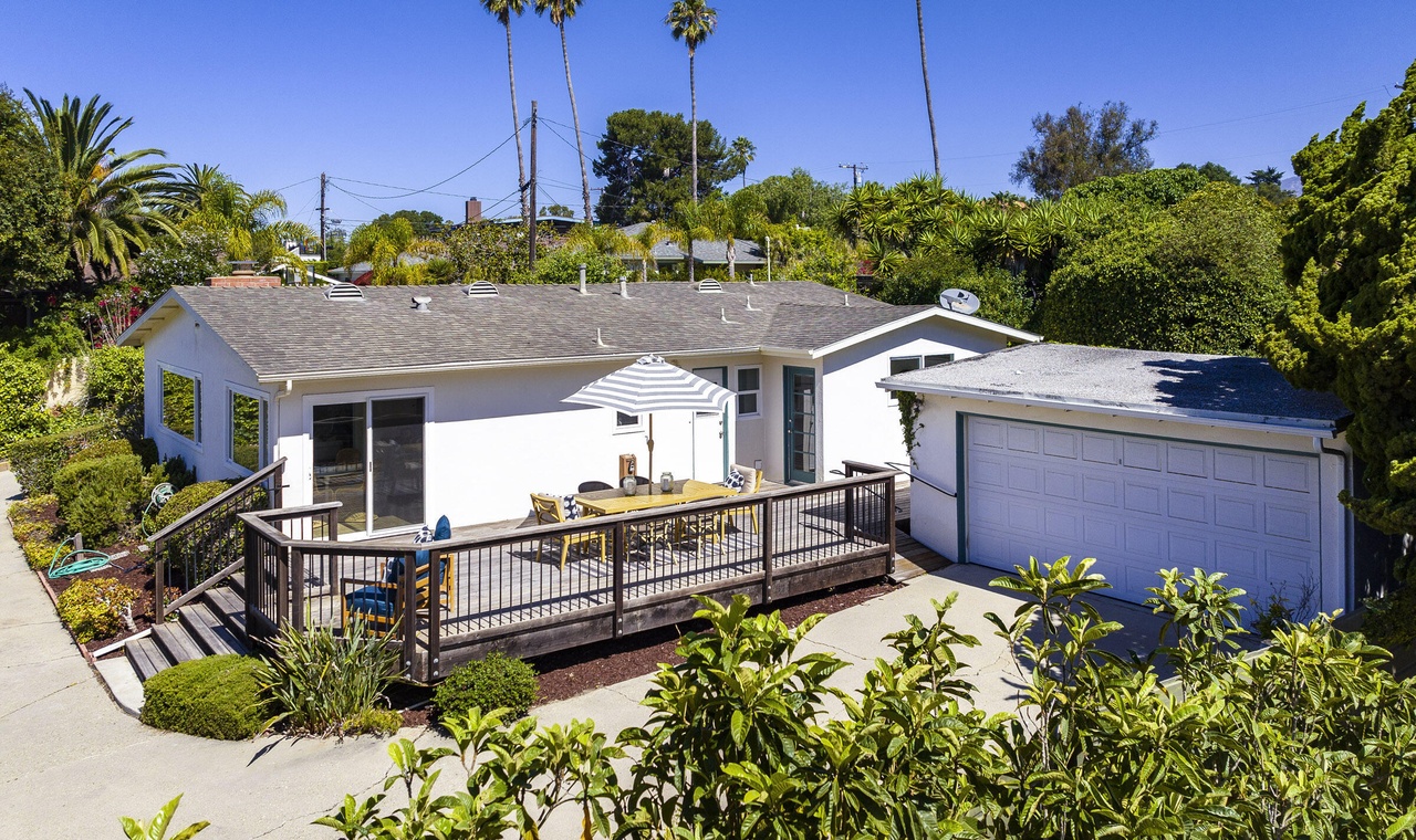 960 Roble Lane ($2.75 million) is one of 13 houses on the Riviera street to have been designed by local legend Alex D’Alfonso. Coming later in his career, they’re more midcentury modern than the Spanish style for which he’s best known. 960 Roble Lane is not huge, with two bedrooms and two baths on either side of a common area comprising living room, dining room, and kitchen, but it’s totally livable and in excellent shape. (Love the skylight in the shower.) The garage roof is certainly an opportunity; the question is, how to activate it without impacting the view from the dining area?