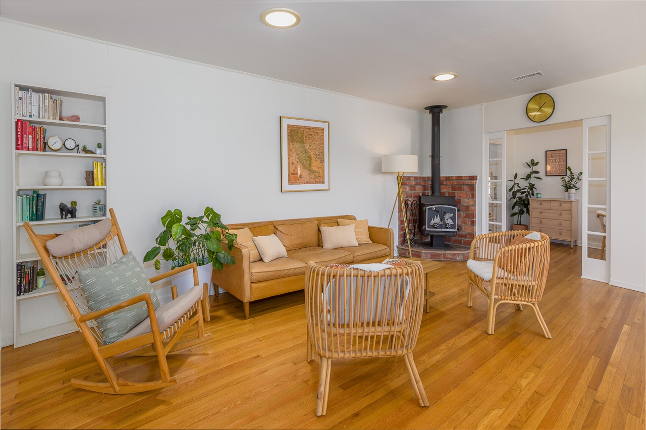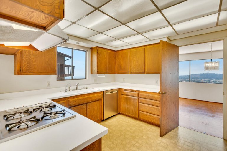 Down the street, the motley 1978 house at 916 Roble Lane ($2.295 million) is 900 square feet larger, but everything needs to be redone—and judging from the electrical outlet embedded in the shag carpet on a staircase, there may be quirks that need to be ironed out. It has views for days, though, if you can handle all the stairs.