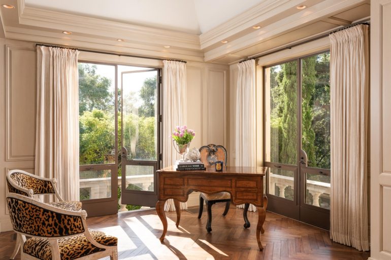 838 Knapp Drive ($22.5 million) has a funny kind of historical provenance: it’s built atop—and incorporates as a family room—the underground music pavilion of the former Arcady estate. The house itself dates from 1954, with subsequent additions, but it feels older, thanks to the Neoclassical architecture and the marvelous stone work around the 3.92 acres of grounds. While the house is done with impeccable taste, the public rooms are on the small side, which may be an issue for folks used to modern rooms you could play catch in. The grounds, meanwhile, are likely to appeal to anyone and everyone, with a grand lawn for entertaining, a circular pool out of a Slim Aarons photo, a lighted tennis court, and many areas for relaxing and contemplating the mountain views.