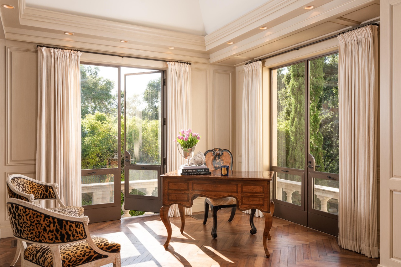 While the style of 1439 Irvine Lane ($13.5 million) is a bit suburban Tuscan, the setting is super—1.41 acres just above E. Mountain Drive—and updating surfaces might make a substantial difference.