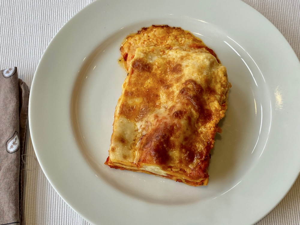 ••• Another supermarket recommendation: my husband and I have long been fans of Rana’s raviolis, available locally in the cheese section at Vons (don’t hold that against the brand) and perhaps elsewhere. We pull them out of the freezer and dress them up a bit—usually with caramelized onions, no matter the filling—and they make a very handy dinner on nights when you can’t cope with anything more ambitious. Naturally, I was intrigued by the Rana lasagna that Vons now carries, in five-cheese and meat varieties. The cheese one was pretty satisfying comfort food, although the package realistically serves four rather than the stated six.