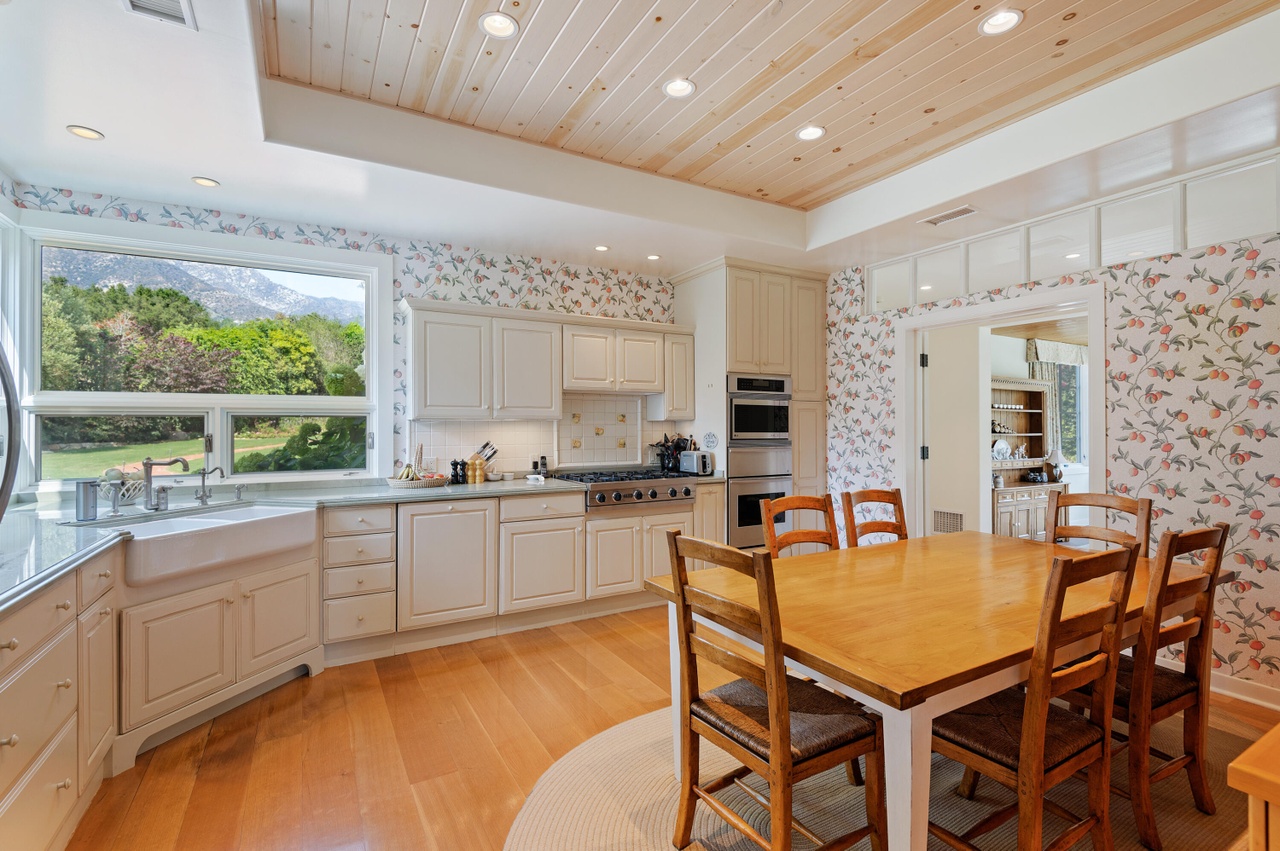 The living room and dining room of 2297 Featherhill Road ($5.5 million), in Romero Canyon, have some old-house appeal; the rest of the property feels very much of year it was built (1989). Two years ago, it would’ve sold in the threes.